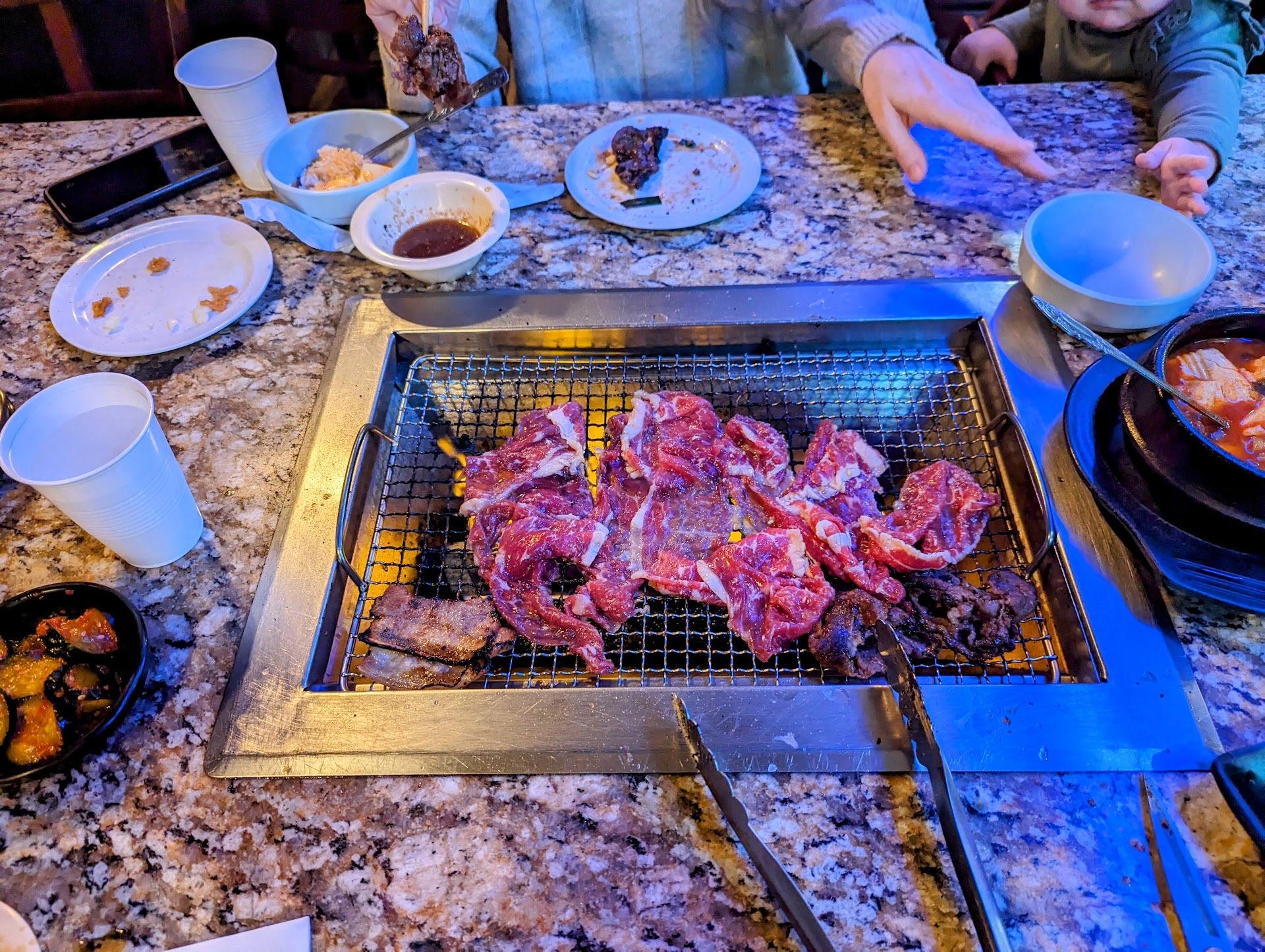 Read moreWe were looking for a place to have our anniversary dinner and it was a cold night, we wanted somewhere warm. Hubby read the reviews about this place and we decided to try it. Since it was a Wednesday, we were concerned it would be quiet with "no buzz" about the place. We walked in to about 3 or 4 tables of people around the little grill on your table. You do not need to worry about being cold. :) Hubby had read about ordering Combo 1 as a good option so we did that. They have beer and some other drinks but brought water out right away as well. The staff was incredibly friendly and helpful since it was our first time. They asked multiple times if we needed help.. maybe because we had the meats piling up. We were taking our time and enjoying the atmosphere. The dinner came with soup (yum!) and some sides/rice. The sides were small tastes, really just the right size in my opinion - kim chee, some broccoli pieces, some type of mash that was yum, some noodle dish, also yum. I mean everything was so good. The staff (we only got Kiki's name but there were two boys working and an older woman who made the food, I believe) offered to bring more sides and even we were offered the sides to bring home with our leftover meat, which we did. Can't wait to have it for breakfast~ I think our bill with tip was about $100 but I really feel that was worth the price and the service. Try this place - you wont be...