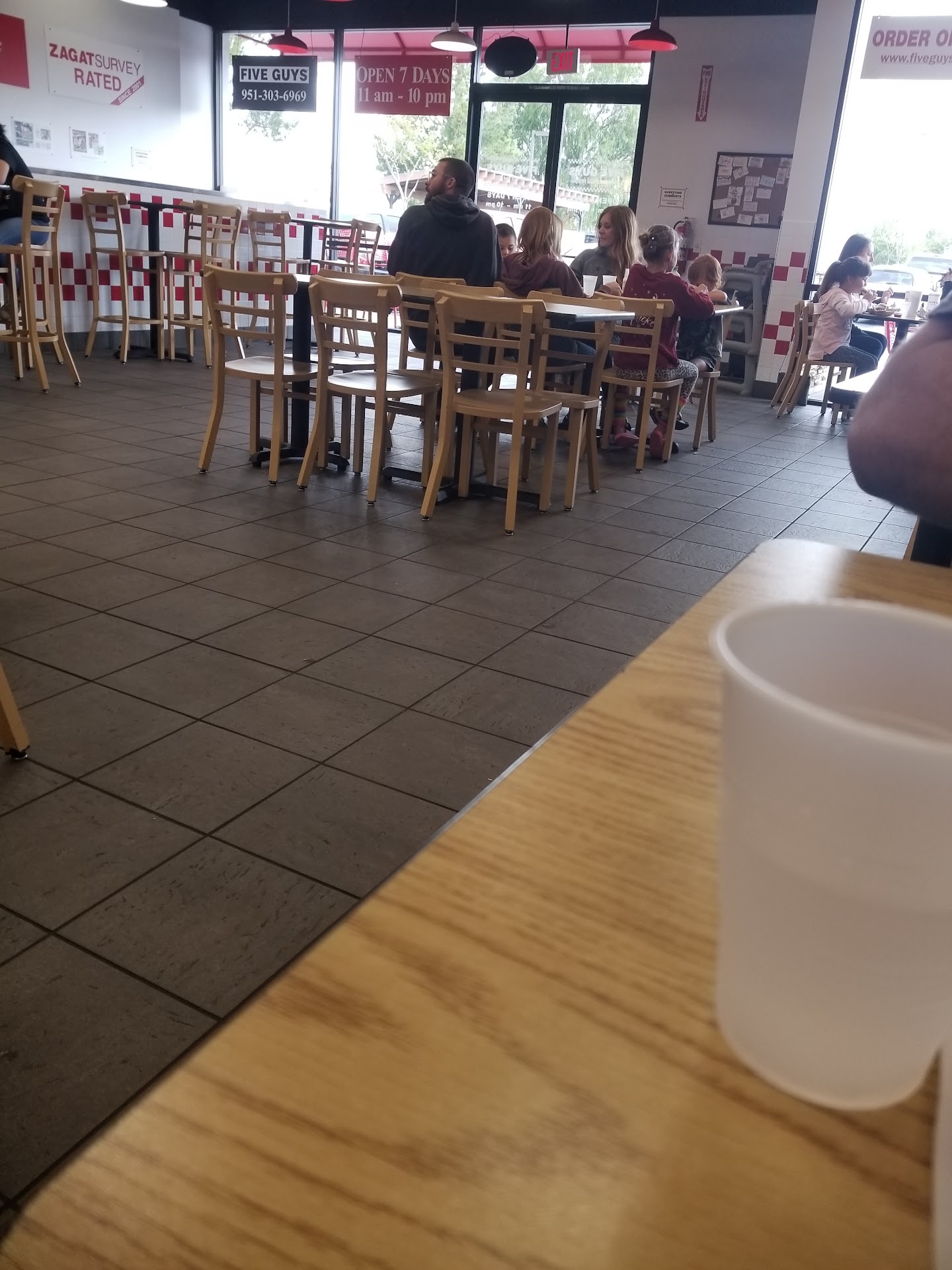 Read moreFirst of all I paid $14 for a burger fries and a drink and for that price I would expect heaven on a bun but what I got was anything but! The bun was so soggy that it fell apart the minute I touched it. the burger itself tasted like it had been sitting under a heat lamp for a couple of hours. The fries were very over seasoned and just old tasting. Over all I am very unsatisfied, but when I went to tell the manager about it he didn't even care! I guess that just the normal experience at 5 guys. I for one feel disgusting and ripped off after eating...