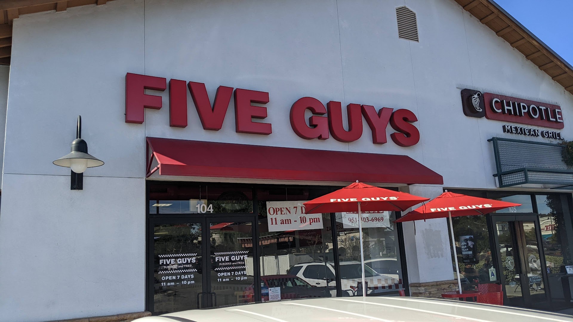 Read moreWe were in town for a soccer tournament and needed a place for lunch between games. This location was good as it had a few different places for people to choose from. I chose Five Guys because the place next door had a very long line and Five Guys had no one in line.