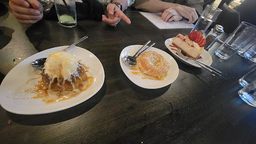 We ordered 3 deserts. Everyone agreed the Crème brÝlÊe donut was the best. The cheesecake was OK, but dry. The coffee cake was good, but the ice cream on top was outstanding.