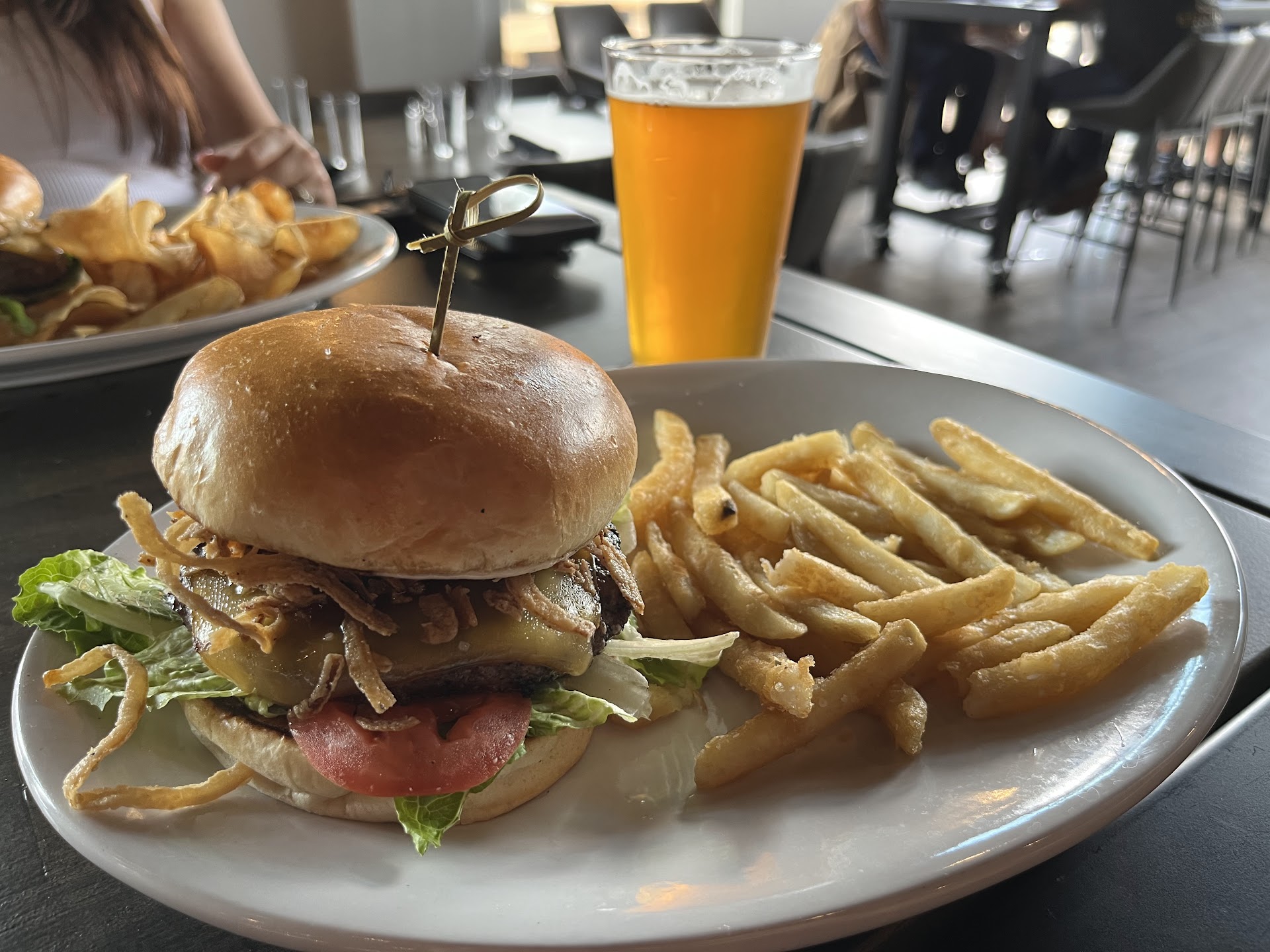 For our meals we got a streak. It was good. We got a burger. Also good, but very light on the bacon jam. The salmon was good. The brisket grilled cheese was great. The ahi tuna sandwich was great.