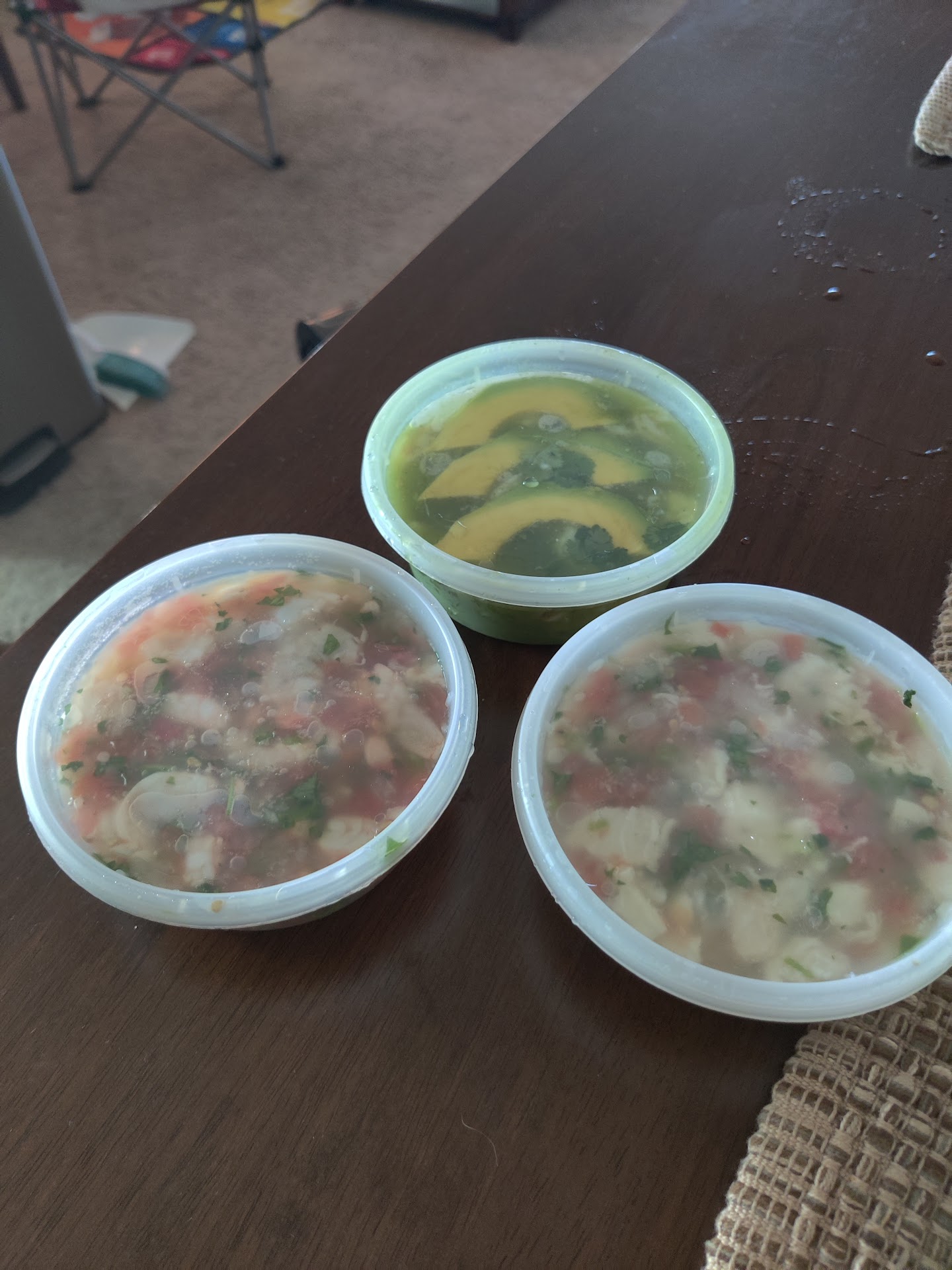 They serve the ceviches in very sturdy reusable plastic containers,too!