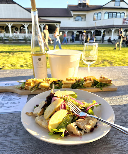 The vineyard has great food and a great wine selection. The only reason I am docking a star (wish it could be a half star) is because of our most recent tasting hostess experience, an older woman with streaked, short hair. She was not knowledgeable of the wines or pairings AND she was standoff-ish, somewhat rude too, when we were asking for recommendations and for notes on some of the wines to determine if we wanted a tasting or not, she would say “I don’t know anything about those wines. I only drink blah blah blah.” At one point, the couple next to us gave up on the tasting and asked for the rest of their tasting card to be of the one wine they liked out of TWO tastings.