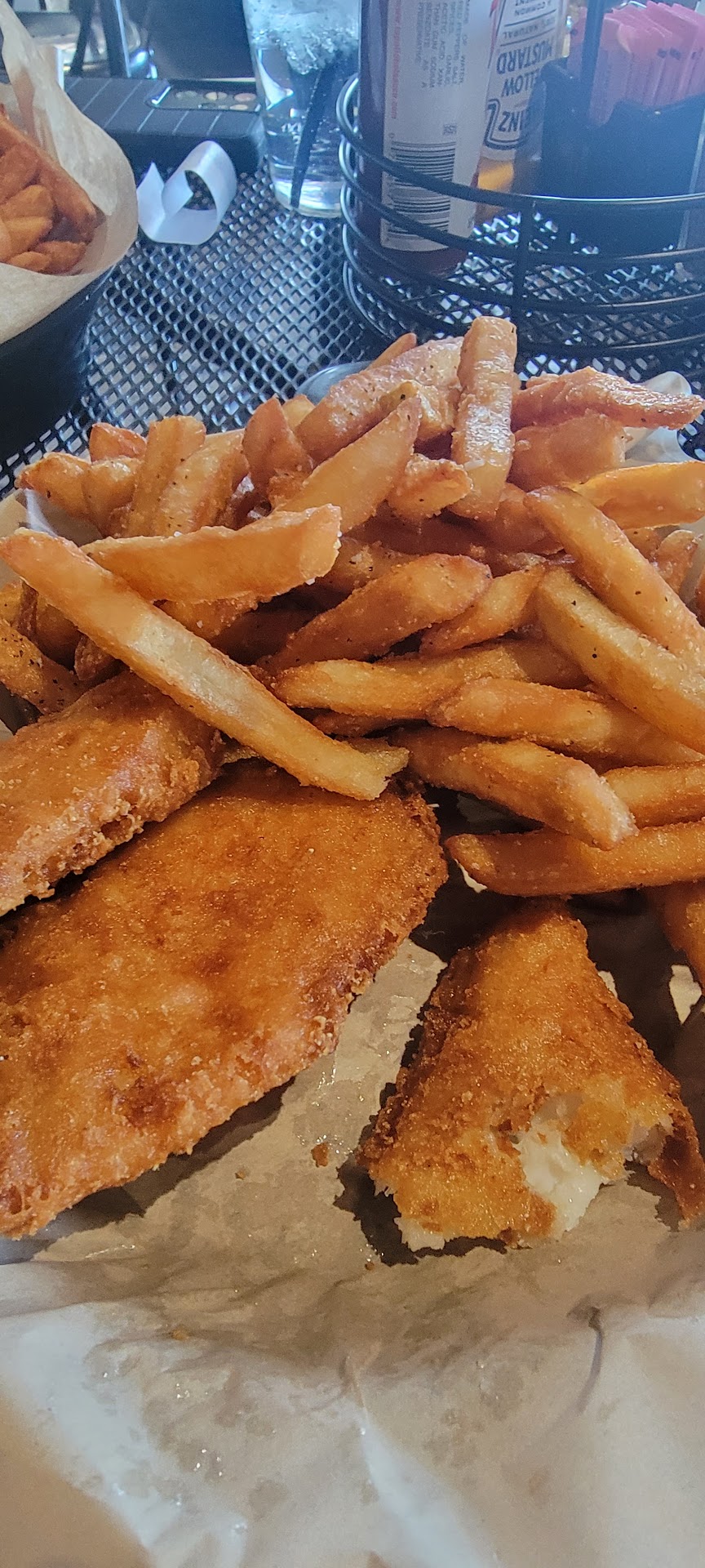 Read moreThis was our first time here. We sat in the back room thinking the music would be lower as it was the middle of the day but it was still very loud. It was OK as we understood this is more of a bar atmosphere. The waitress took our order about 10 minutes after sitting down which was fine. We then waited almost 35 minutes for a burger and fish & chips... There was NO ONE there (as pictured in my photos)! Where things really went south for us was when, after having our food for literally 2 minutes, the waitress came back and told us she was leaving and handed my husband the bill and ask him to pay now. He literally had his burger in his hands - he was taking a bite - as she stood there waiting for his wallet. He put his food down and handed her his card. She came back and set the bill and card down and told us again that she had to leave early then walked away. A few minutes later, a waiter came over to collect the bill (that had yet to be actually signed since we were still eating) and said she had sent him over to get the bill. Again, my husband had to set his food down to sign the ticket. The guy apologized, took the bill, and walked away. The redeeming part came at the end - the waiter came back to get the dishes I had stacked up. He stopped and apologized if he had made us feel rushed. We explained what had previously happened and he said he could tell it was something. We enjoyed a great conversation with him and ended the experience knowing they had one good waiter on staff. The waitress that "HAD to leave early" was still walking around doing alot of nothing until he had come back with our signed check - obvious to me that she was waiting for her tip even though he was going to have to clean everything up and she had done nothing. I can't say that we'll be back here. The food was fairly hot but just ok in favor. My fish was pretty hard on the outside but the fries were good. The waitress really ruined our first experience here and, with other choices in the area, we'll probably just...
