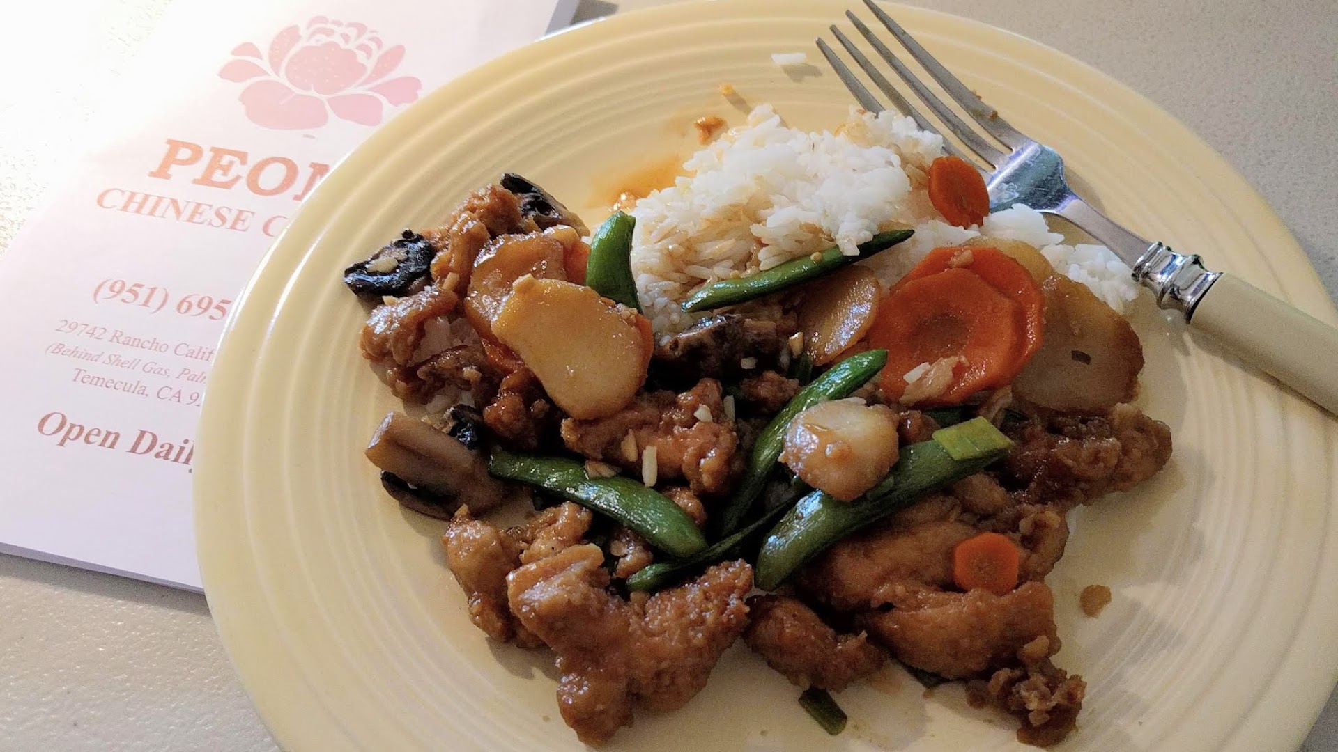 Read moreI've been going Peony Chinese Restaurant in Lake Elsinore since around 1997 and it is one of my favorite Chinese restaurants. To be honest I usally order the same thing because I believe its the best they have to offer. My wife isn't a big eater, so we usally share. They're prices are higher than fast food Chinese restaurants, but I believe it's way better than fast food Chinese. I always have the House special chicken lunch. It comes with rice which i substitute with lomein noodles and it also comes with a salad which I substitute cream cheese wonton. I then add a side of steamed rice and a small order of Wonton soup which serves 2-3. By ordering this way we get a lot of different flavors and we actually have left overs. Just DELICIOUS!! Oh and I almost forgot they have a beautiful dining...