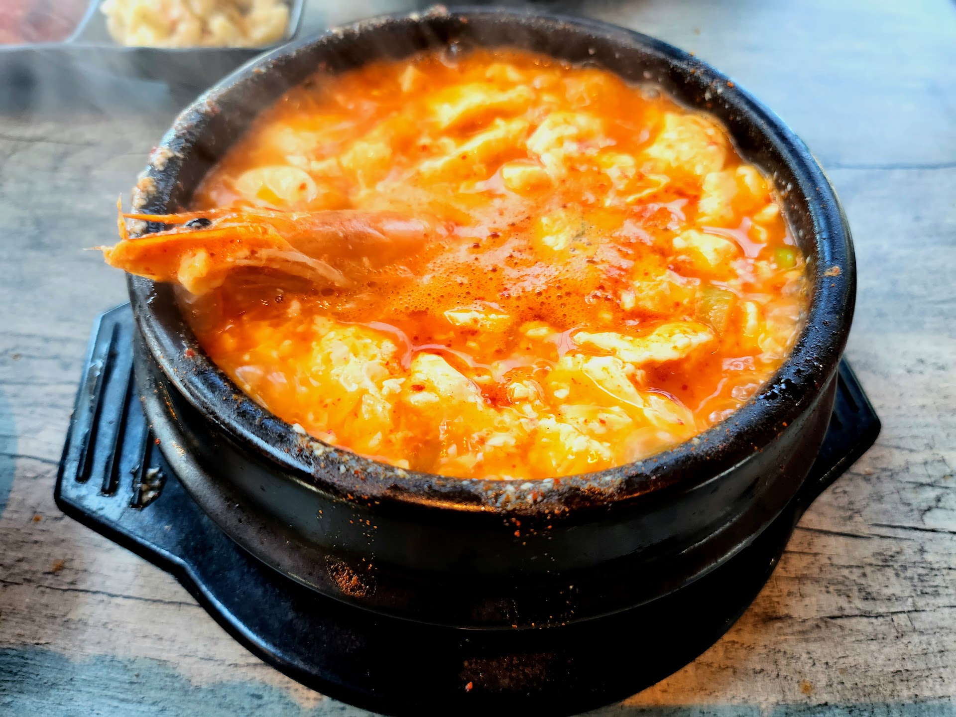 I can't vouch for the overly sugary comment because that wasn't our experience. My soup was bubbling hot, spicy, and delicious! Next time I will up my spicy level past medium. My daughter got the mild one and she loved it!! It was so well-balanced and light-spiced. Super safe pick for ppl who don't like spicy food, so go for mild. If you eat spicy food go past medium. We had two seafood tofu soups and not one of them was sugary. My husband got the Hungary man and it wasn't sweet either. He mentioned how the seaweed salad wasn't overly sweet and he was surprised/appreciated how well-balanced everything was.