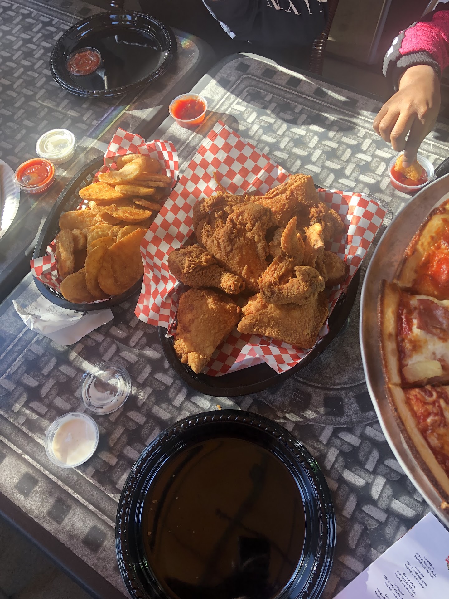 Read morethis place is over priced and over rated. my husband and I visited the location in temecula. it appears to be a sports bar with a few ticket games that can be cashed in for prizes. its Monday night at 8pm. the place is deader than a doorknob. there was a employee at a table eating. and us. a gentleman came in right after us, he ordered to go. no one came in the entire time we were there. I am willing to bet it might have something to do with melinda, the manager. melinda wasn't around when we ordered 2 all you can eat saladbars and a 9 inch rustic garlic chicken pizza and a 18 piece wings totaling$57.35. but when I ask for a plate for the salad bar melinda replied with it's for 1 person only, the person who did take our order replied with we had paid for 2 all you can eat saladbars, our wings had no sauce on them. what was supposed to be honey bbq sauce was just bbq sauce. there buffalo sauce was Tabasco based and tastes just like chuck cheese. I would recommend McDonald's before this place. someone might want to teach or explain to melinda that accusing the few customers you were lucky enough to get in the door of wrong doing may not be the best practice when she has no knowledge of...