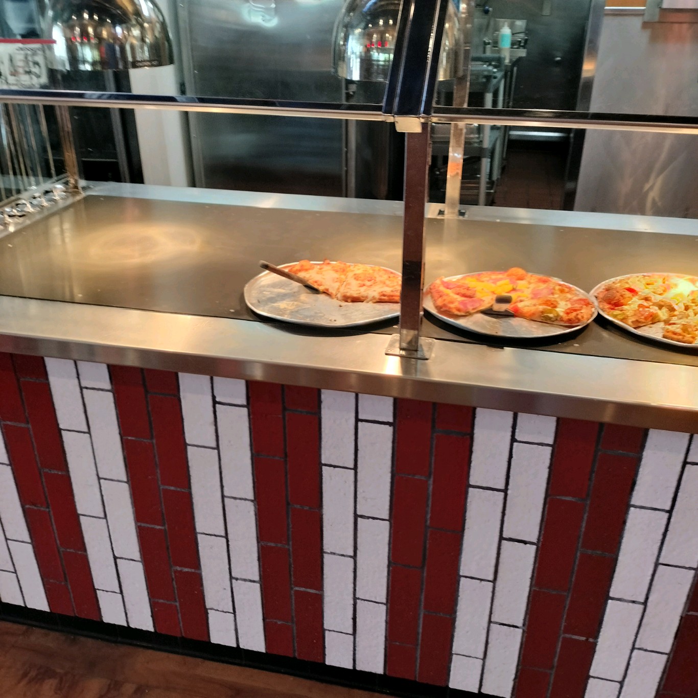 Read moreWe came in for lunch on a Sunday expecting to order a pizza and mojo's and discovered the lunch buffet operating. Surprise! Shakey's Pizza never changes, except to add new topping choices! Haven't eaten at one of these places in about 7 years and the pizza flavor is just as it was then and as a kid. The mojo's aren't what they used to be: now they are purchased frozen instead of made by hand onsite. Chicken was cooked well and not dried out. That said, they need to kick it up a notch and learn to anticipate what is needed out front, for there is no excuse to let a salad bar or hot bar run dry. I have worked pizza buffet bars and it really isn't that hard to keep up: you dedicate a few employees to it and that is all they do. Pizza gets down to half start cooking more. Same for salad bar: keep it stocked. Also, could have been cleaned better. Looks like a midnight cleaning party is in order, tables and condiment containers need cleaning. Floors and windows were fine. Lots of plates for refills but silverware was down to 5 utensils. Very attentive staff so I am left wondering...do they know to clean and stock as they go or were they...