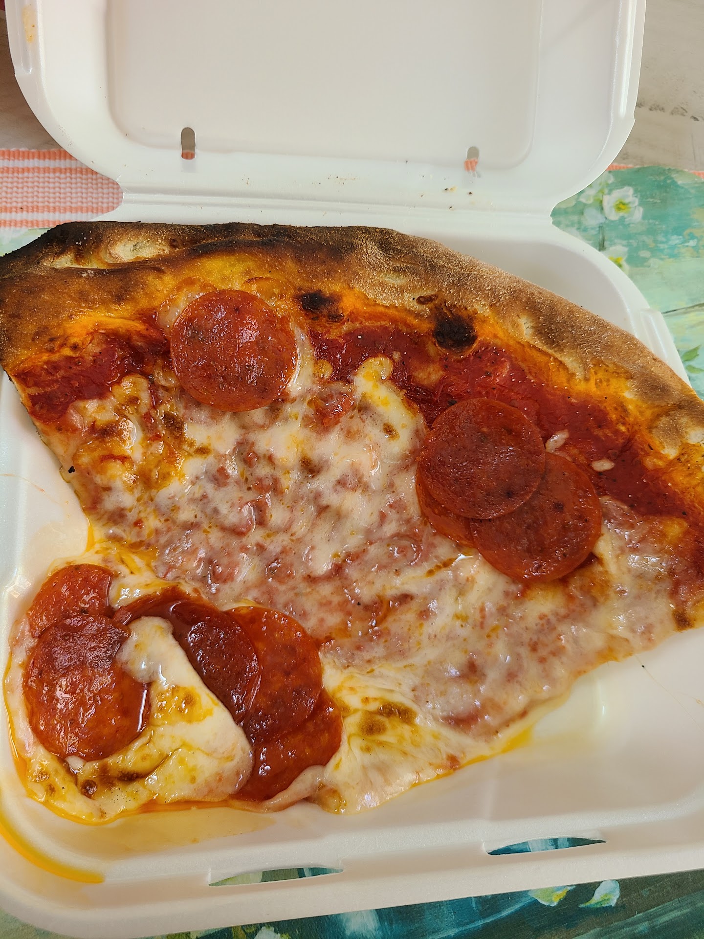 I only started visiting here after the lockdown. This was my goto place. Now that lockdown is over, it's like they don't care anymore. There were only a few tables sitting. Server was not busy so I figured this would be a good time to get my two slices to go. Was kind of in a rush and didn't have time for a long wait so I chose this place. First, I don't remember 2 slices being 10 bucks but maybe I'm wrong? Anyways, as I was waiting, a big family came in. I waited outside but after awhile I realized my pizza must've been done. It was just two slices and they just heat them up. I went back inside and saw the two slices sitting at the expedite station. Family was not even seated yet so I don't know why she didn't already give me my order?? I walked up to the cooks station just to double check that was mine and shortly after she takes those two slices to the register and as I'm standing there, she just sits them aside. Ugh. Like, she saw me looking but she didn't care, she just wanted the big family because that means a big tip?? But my pizza had already been sitting there and she hadn't even sat the family yet, then she hands me the slices, they were already on the verge of being cold again. No cheese. No peppers. Additionally, the pizza looks lame. A couple of pepperoni in one place. Just looks sloppy. The quality has seemed to take a dive here. 5 bucks a slice is now out of my value range.