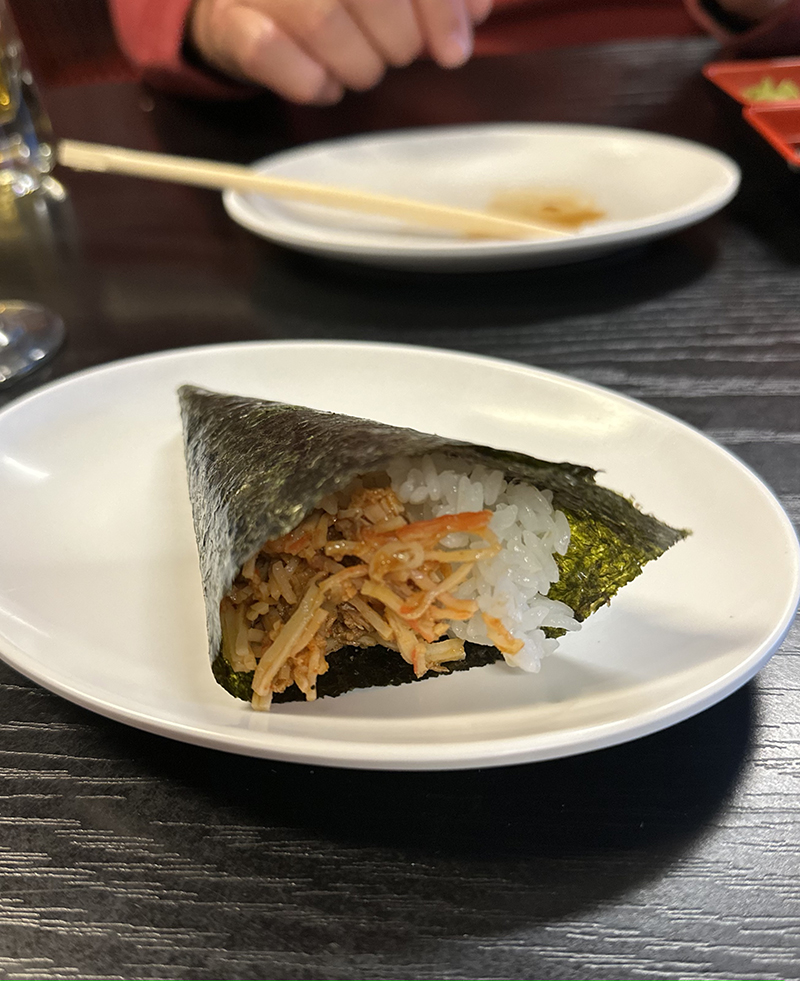 One of the highlights of the evening was when the chef asked if I’d like him to make me something off the menu. Intrigued, I eagerly agreed, and what he presented was nothing short of extraordinary. The roll he crafted was a perfect balance of flavors and textures — hot, spicy, and savory all at once. The fish was beautifully seared, creating a rich, smoky flavor, and topped with a fiery sauce that had just the right amount of heat to awaken your taste buds without overwhelming them. The contrast between the warm, slightly charred exterior and the delicate, tender fish inside was absolutely incredible. It was a dish made with so much care and attention that it felt like a personal gift from the chef.