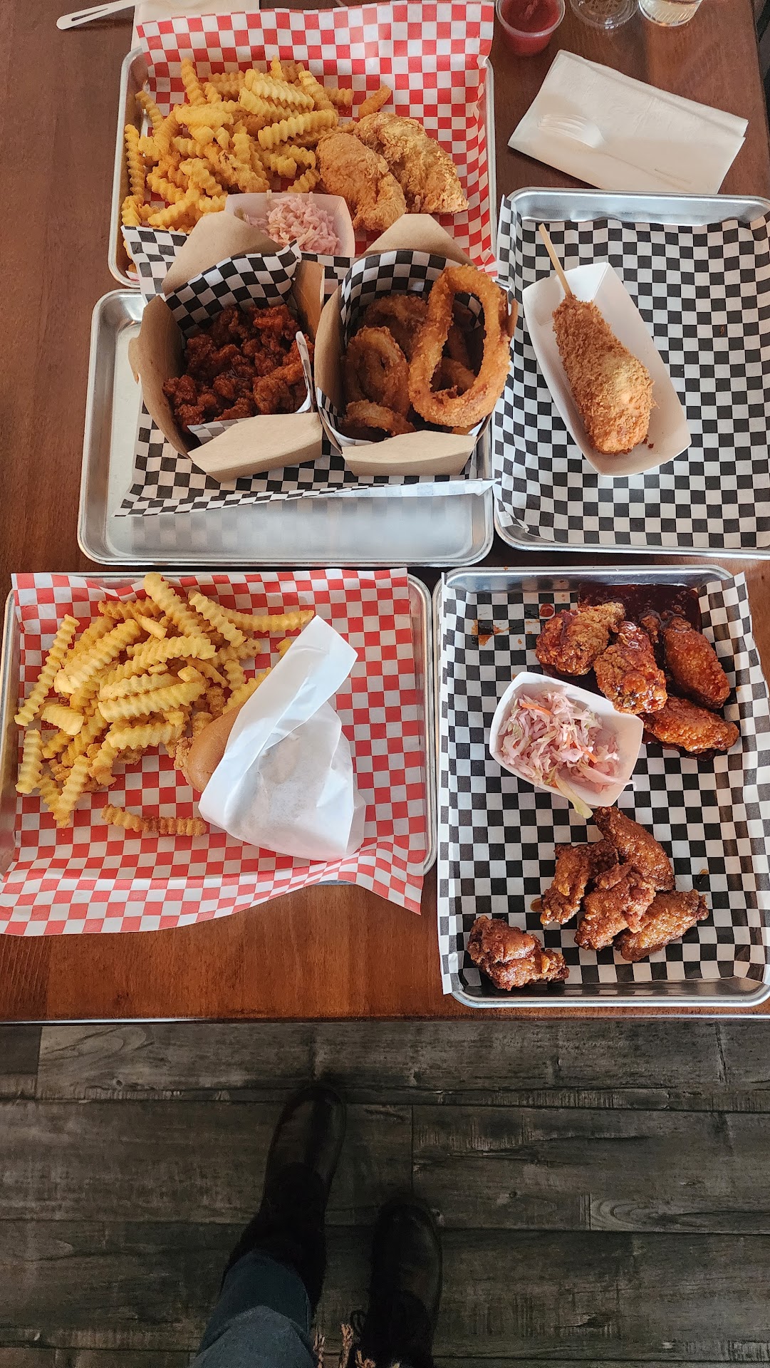Read moreHeard about Ten Hut on FB. Arrived and was greeted by the friendliest server/cashier. He helped us make decisions on what to try. Got the Sampler Combo/Duo (2 tenders, 4 crispy/4 Soy garlic wings, mini popcorn Chicken, fries), Chicken Sandwich, Onion Rings, Half & Half K-Corndog($76 total). The crunch on everything was so perfect and tasty. I think my fav are the wings, both Crispy and Soy Garlic. Oh and the fries had a yummy sweet seasoning. Even got to meet the super friendly owner. Will be back and definitely recommend if you are craving chicken or Korean food. Parking was plenty in the free public parking just behind the building. They also have both indoor and outdoor seating to...