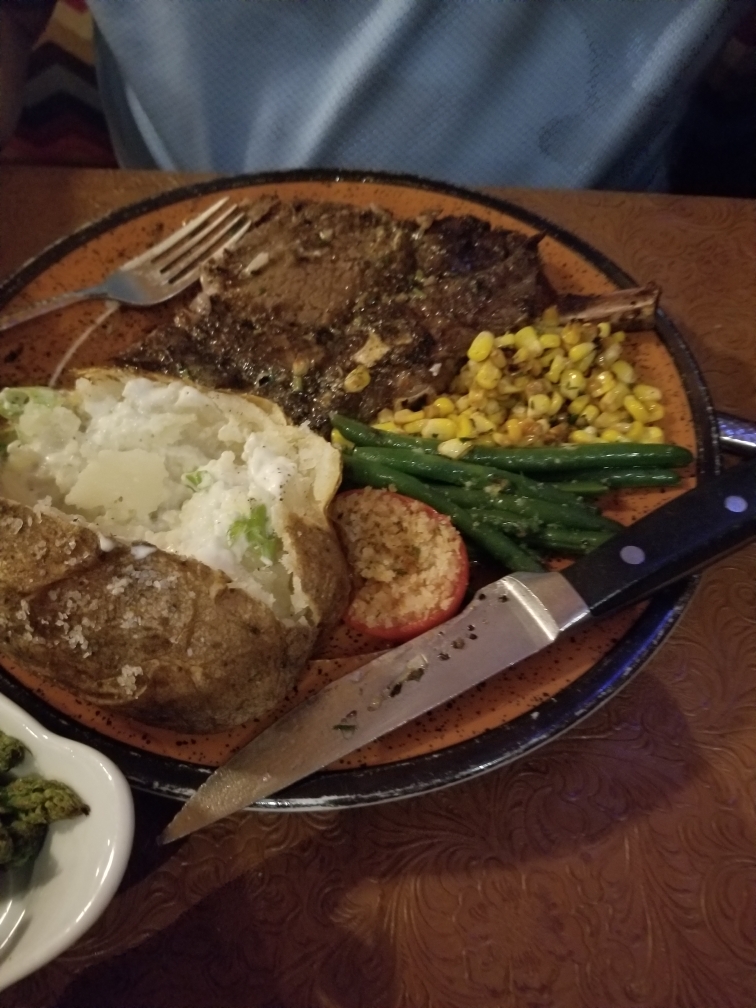 My bf ordered, I believe the ribeye steak with a lobster tail with cowboy potatoes and you guys... YOU GUYS! THESE THINGS WERE DELICIOUS! They were perfect, round French fries basically, but with magic on them. I ate 2 of them off my bf's plate. He finished his whole plate.