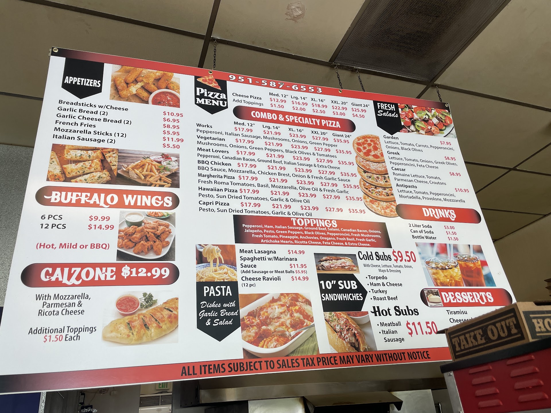 We didn't eat the food. The pizza was clearly over done and wasn't made how we ordered it (half-half). The cheese bread was just a small amount of cheese on bread... the sub was soggy and clearly thrown together with aggression.