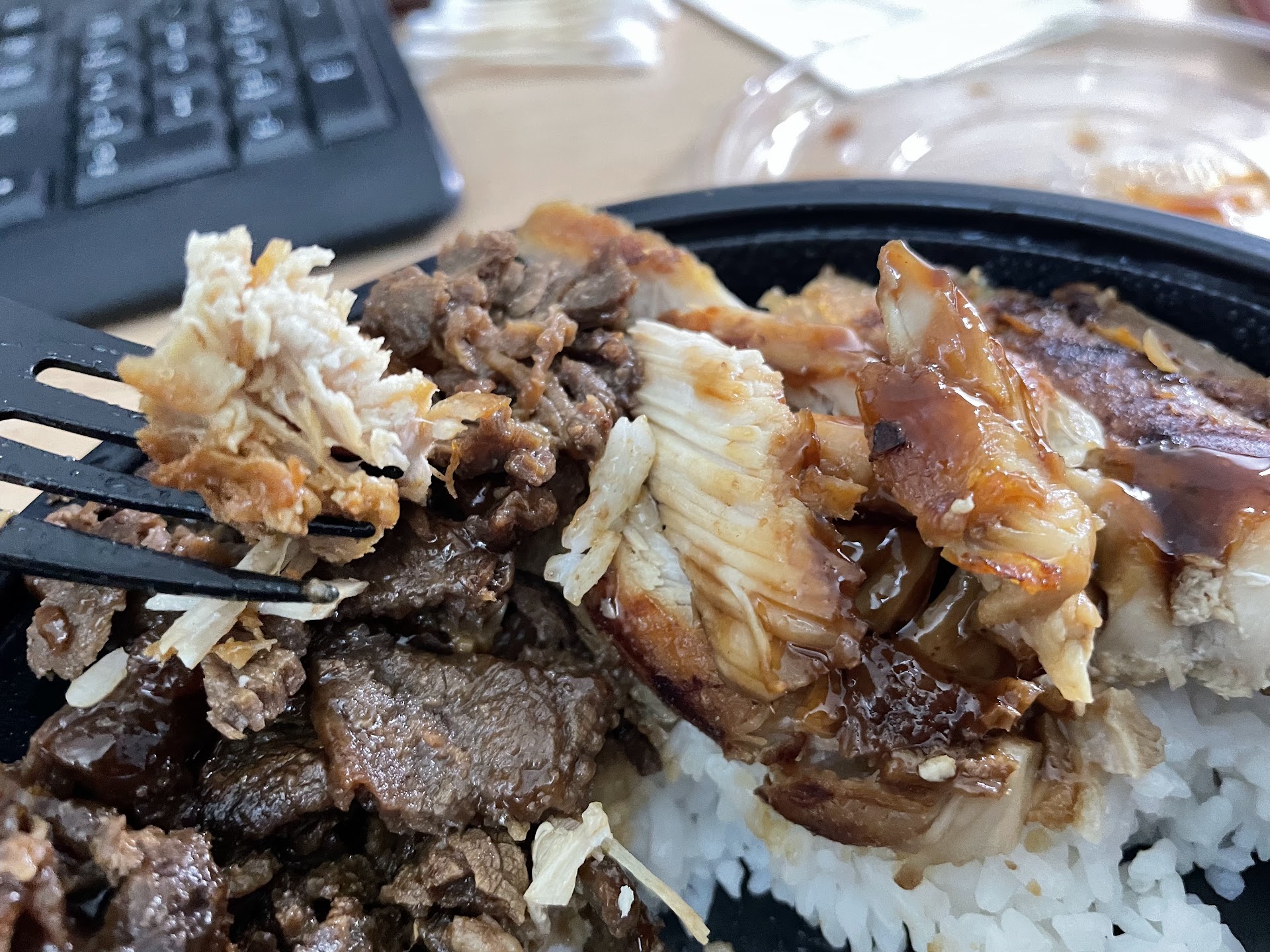 We ordered chicken rice bowls, but the portions were weak barely any protein, and for the price, it just didn’t feel worth it. We asked for green onions, which were forgotten, so we had to go back up and ask again. Also told him the order was for here, but he packed it to-go anyway, probably just to avoid cleaning a tray.