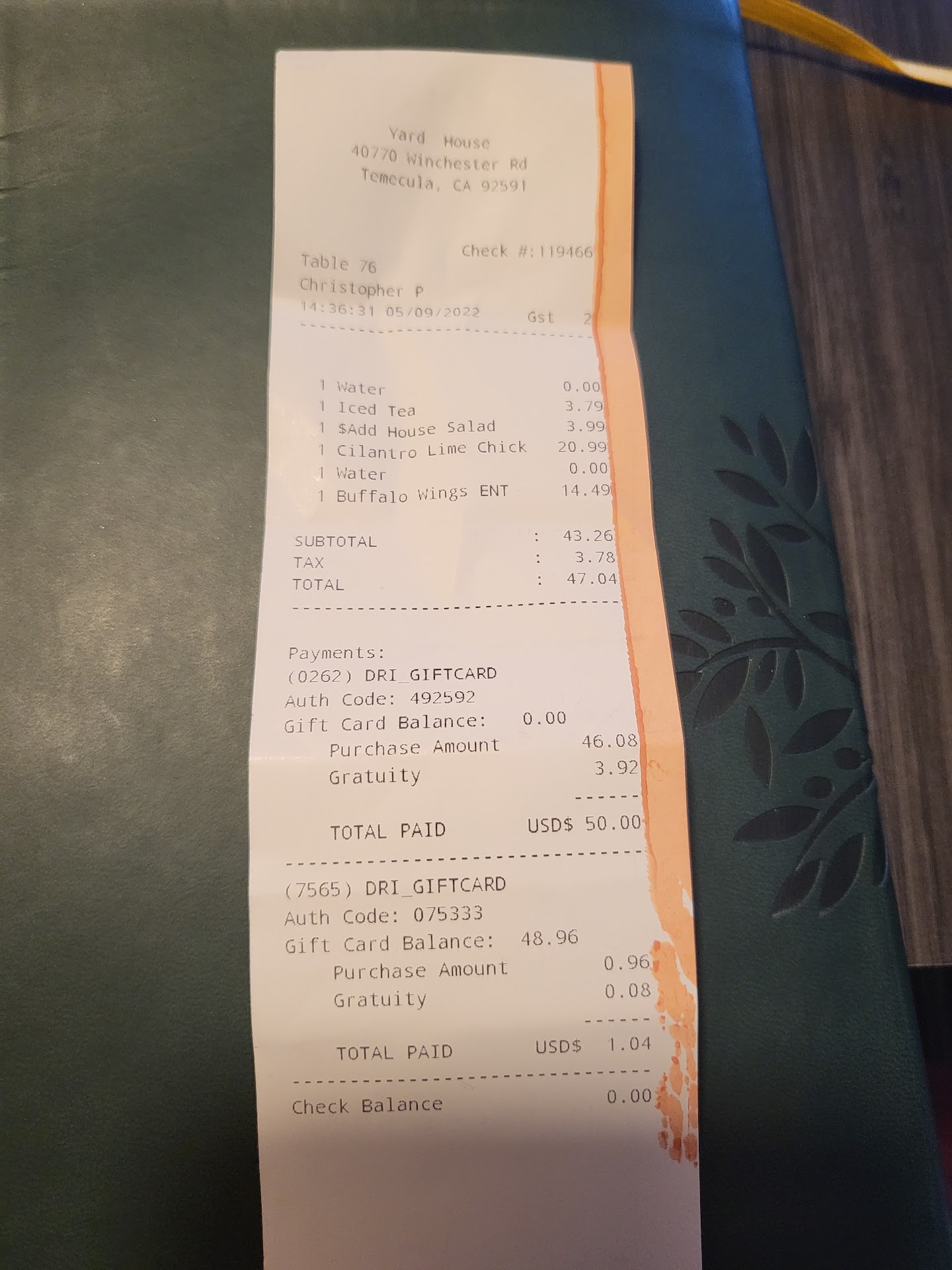 I hate to give one of my favorite places a bad review. I truly do. There are some good people working there and my review should not be a reflection of the hard working staff as a whole. My review is in regard to one person whom I believe should not be in customer service. I have been coming to Yard House for over 10 years. Always been a great time. Last night we had the absolute worst experience. We sat at the bar and our bar tender was Samantha. From the moment we made contact with her we could tell there was something about us she didnāt like. That was our immediate perception (which is not good), and the treatment that followed made this all the more apparent. We are polite, low key people, not demanding or pretentious in any way, out on a Sunday night for dinner and a cocktail. Here are just a few of the specifics. We ordered drinks. She brought the drinks. My wife spilled some of her martini. We asked for some napkins. The bartender looked at the spill, gave my wife a disgusted glare and then proceeded to hand her a single 4x4 napkin. Really? She didnāt offer to help wipe up the spill. And, that single napkin didnāt cut it. We ended up using our cloth dinner napkin to clean up. Ok, Regroup. A few minutes later she came back and asked if weād be having dinner or just cocktails. My wife said yes weāre having dinner, and I said oh yes, weāre ready to order. She walked away and 15 minutes went by. We flagged her down and she appeared to be somewhat bothered. I said, Iām not my sure if you misunderstood..we wanted to order dinner. Instead of apologizing, she said, I asked you and you said you already had dinner. I said oh, I think you heard me incorrectly. Again, with that disgusted look on her face she said..what would you like? I said, sorry for the misunderstanding. Again, She just looked at me with disgust and saidā¦what would you like? The evening went on like this up to the very end when we finally were forced to ask another server for the check after I had placed my card in the bar glass for over 10 minutes and she ignored us. She finally came back and placed our bill on the counter and said, with a forced smile.. have a nice evening.. Really? I then asked for a box for my wifeās leftover pizza. There was 3/4 of a pizza on the plate and she came back with a small 4āx 6ā black box (we saw her handing another couple a full size pizza box). Pretty pissed off at this point. I stuffed that entire pizza into the small box but couldnāt get the lid closed. My wife said, letās get the hell out of here. For the first time in my life, I filled out the check and placed a big fat $0 in the gratuity section. I always tip at least 20% or more. Nope. Not for this. This person was definitely angry about something. Please get some therapy, Samantha. Not sure we will ever go back to Yard House. But, weāve decided that if we do and we see Samantha, weāll be making a U-turn. Manager, do the business and your...