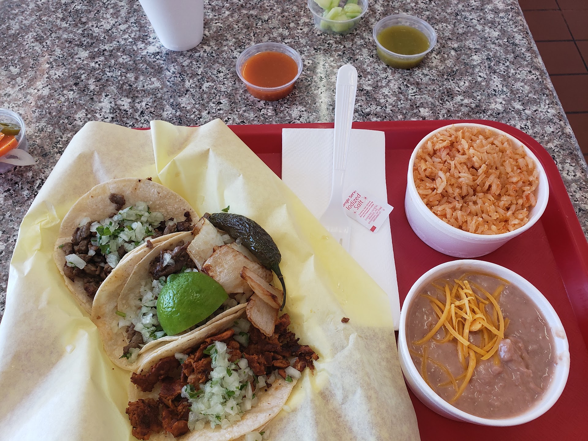 This place is easy to miss, I may have driven right past it if it hasn't been recommended to us. My recommendation is, if you like Mexican food, you have got to try this place. The guys that were working were so nice and obviously talented cooks. The seating area is small and quaint. Because it was so late, it was really quiet and overall nice dining experience. They do also have a drive thru though if you don't...