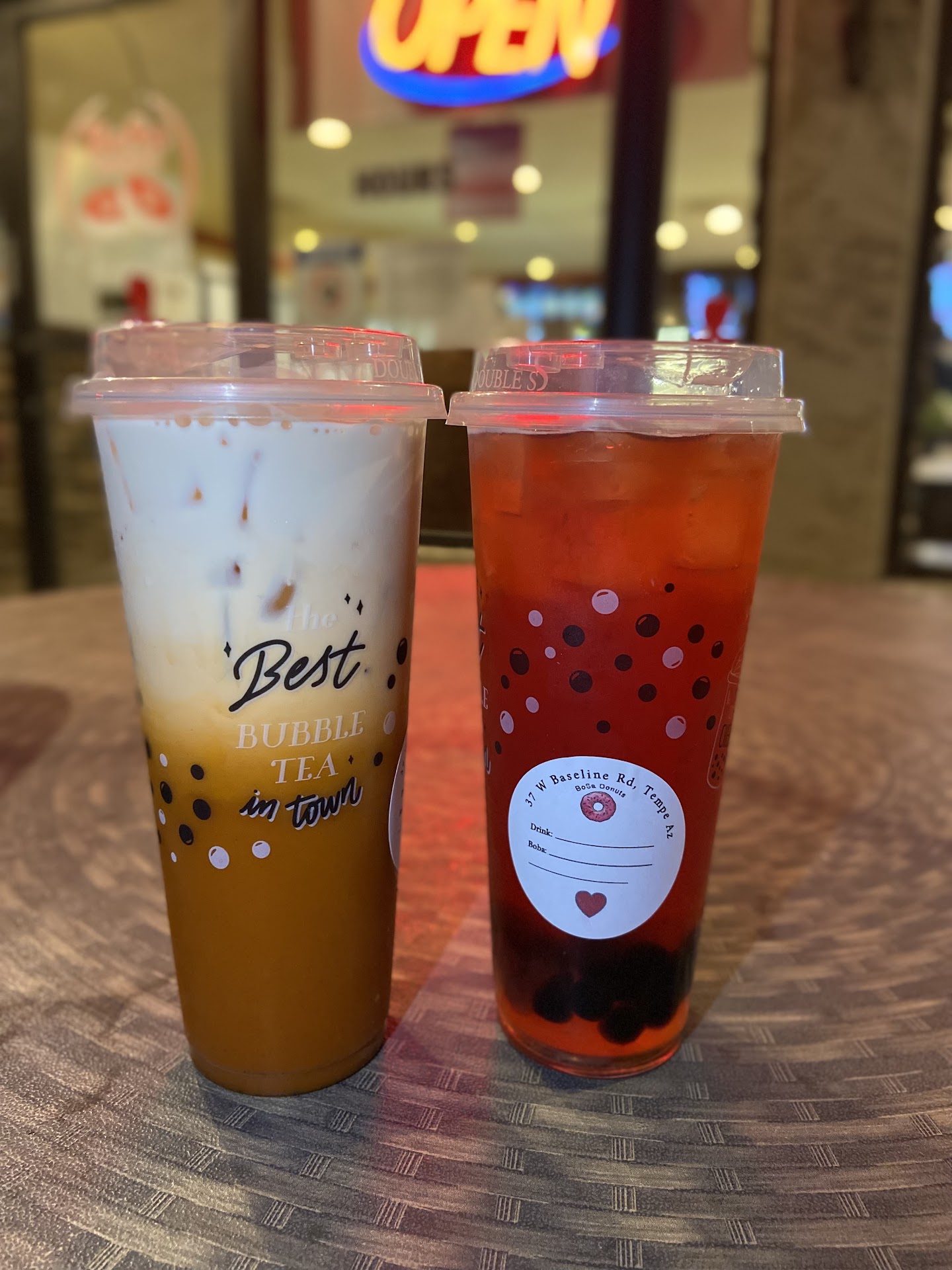 What I got: a rose tea of some sort (included toppings) and a Thai tea.