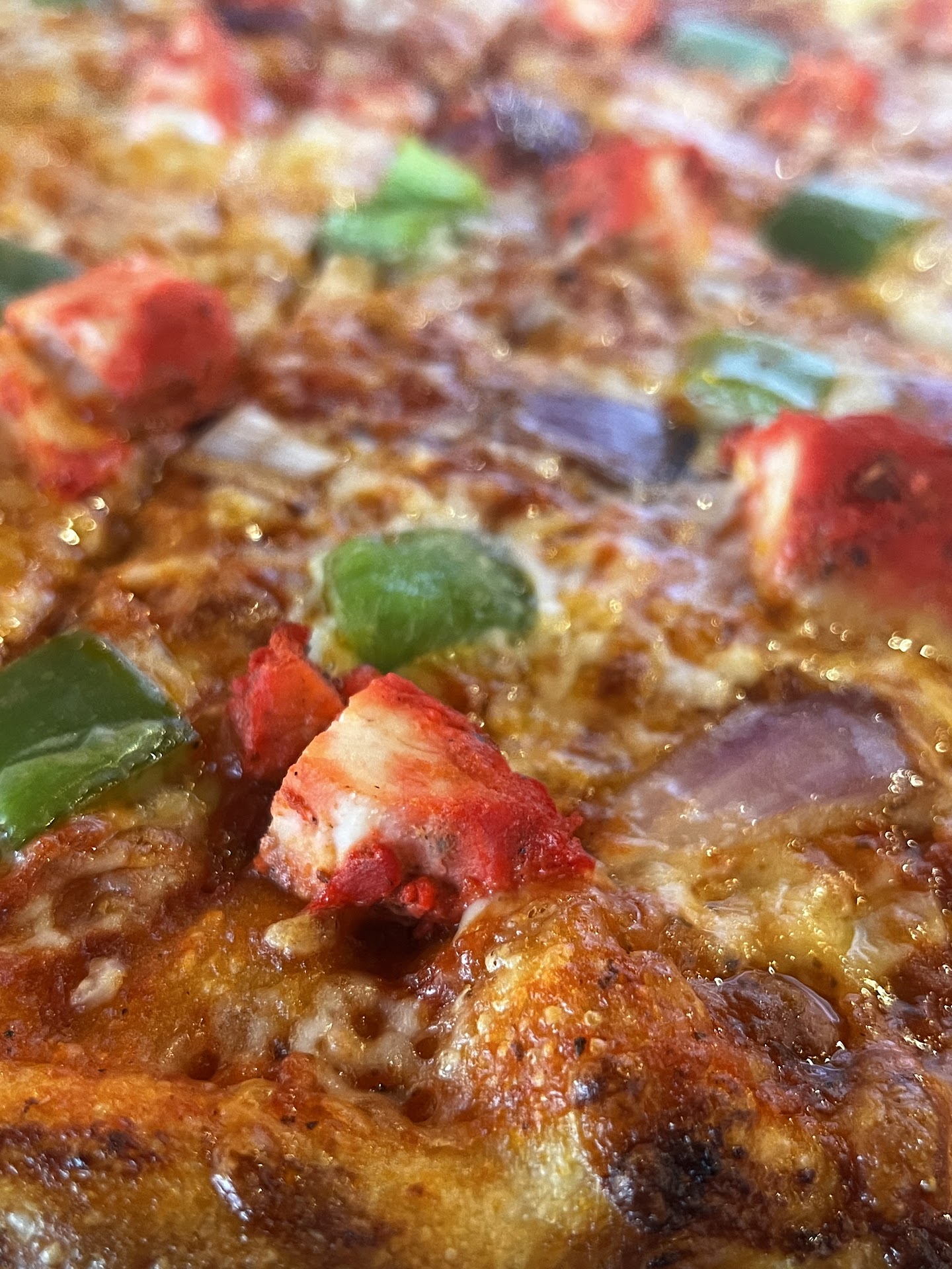 I’ve had Indian pizza in other states (incl. Curry Pizza Co. in the Bay area), and was excited to hear we had a place of our own. They have two sizes, 10” for $11 and 16” for $18. We ordered two 16” pizzas—Chicken Tikka Deluxe and Spicy Paneer Deluxe for a party of 3. We got water cups and mango lassi (refrigerated). Everything was delicious and on-point. Definitely more of a thin crust pizza, but sizable and tasty. I also liked that they weren’t dripping in grease. In comparison, to places like Curry Pizza Co. found that the taste and ingredients come through well. For context, Curry Pizza Co.’s pizzas are thick, and lack flavor.