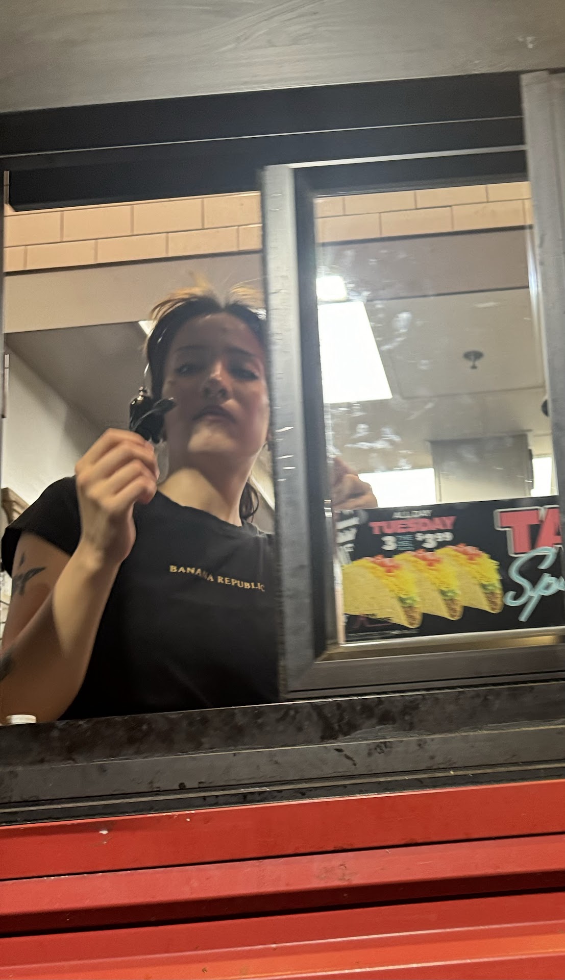 I have many years of experience in the food industry at high levels. They need to be trained on customer service and not screw over your customers by making them pull all the way around to wait for food that comes out in 30 seconds a lot of times cuz I order crispy chicken tacos. Not to mention there's always sketchy people hanging out front because this area I'm sorry to say has a lot of people camping around so I rather stay in the Drive-Thru where I'm supposed to get my food and not to the front door and have them walk it out to me which is ridiculous which is against the point of a...