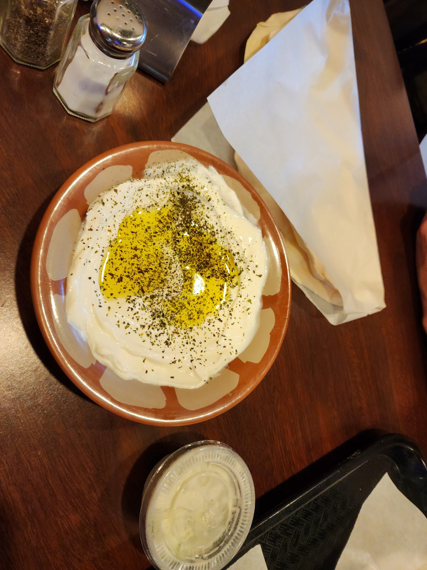 Read moreSo I came here with my husband after having Opa and loved Opa's cuisine. I'm not a huge Mediterranean/Greek food lover but some of their menu items are absolutely incredible. We wanted to venture more into this food with trying a new place. Honestly, there were so many options here between appetizers, combo plates, and desserts that I was extremely overwhelmed making a choice. We over ordered and spent so much for just two people but at least we know now what we like and dislike. The pita bread is delicious, the grape leaves are so so (I like Opa's better) the pizza was good, and the garlic sauce is very good. I'm not a huge fan of gyro meat or falafels but my husband said his was pretty good and their desserts are worth a try. Honestly, coming back I would order the pizza and pita bread with the tzatziki and garlic sauces and probably pay a 1/3 of what or bill came to. Overall, I much prefer Opa! but if you are a fan of this food then I would recommend...