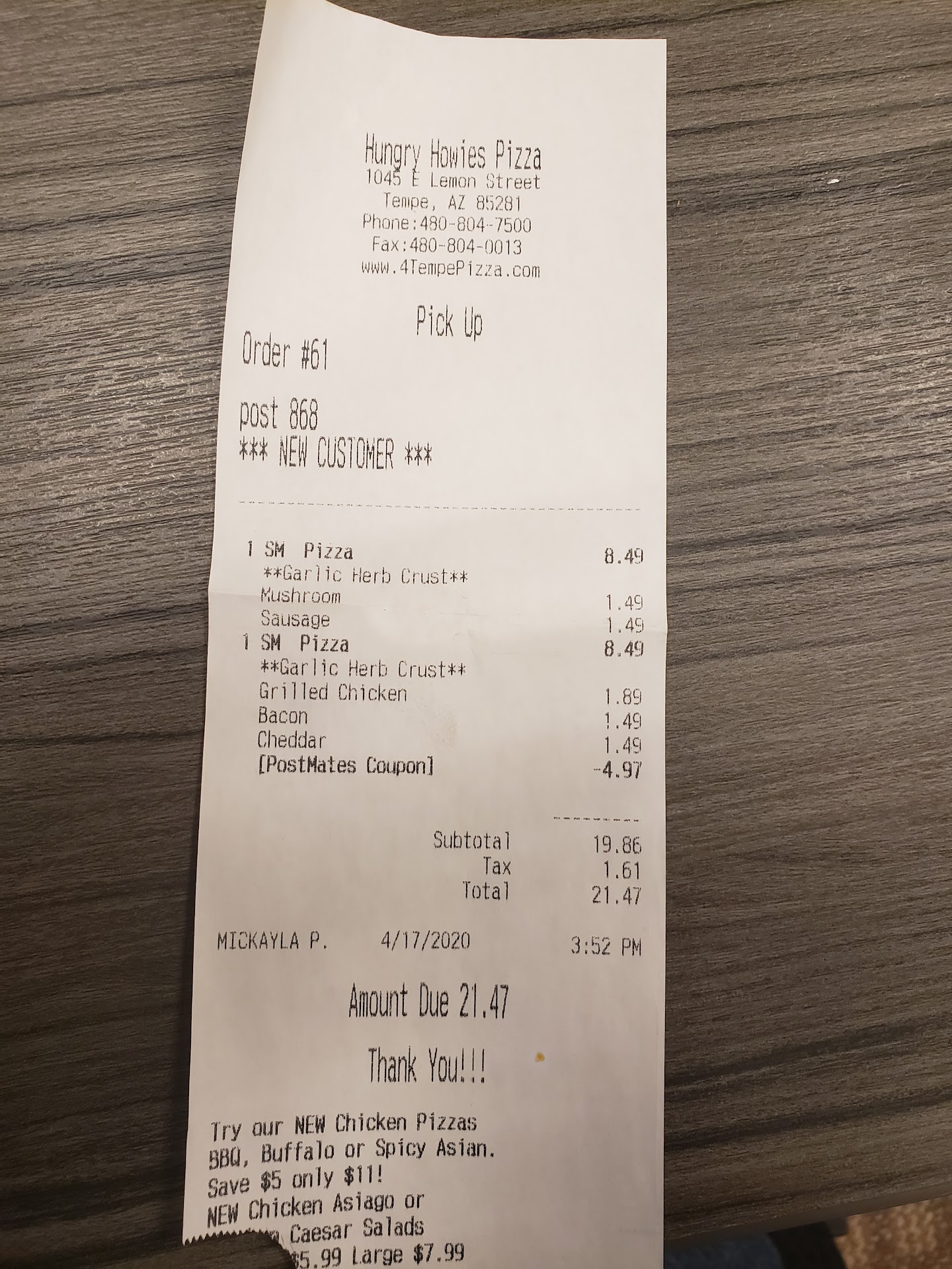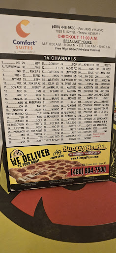 The best thing about Hungy Howie's is that they sponsor the chanel list in the hotel room. Other than that, skip this place. Spend a few extra bucks on something else, anything else.