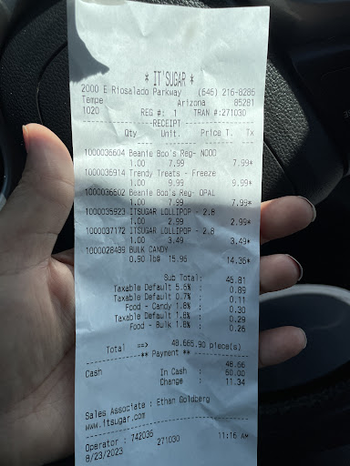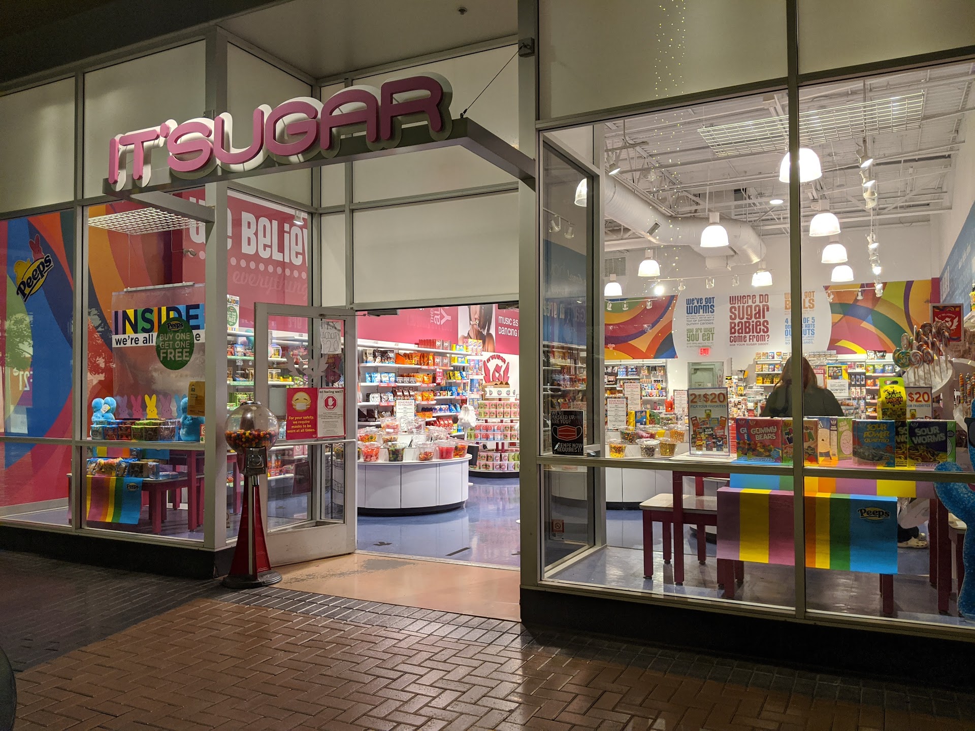Picture this. You open the door and walk into a brightly lit room full of carousels filled with various types of gummy treats, surrounded by shelves of boxed goodies and stands overflowing with lollipops, chocolates and confections. Now, since you just walked into an IT'SUGAR and not your average candy store, look past all those front of the store candies and check out the more... inedible but amusing choices. Gag gifts, plushies of your favorite candy, mugs and placards that you will be offering your significant other to explain to the kids while you walk over there quietly...