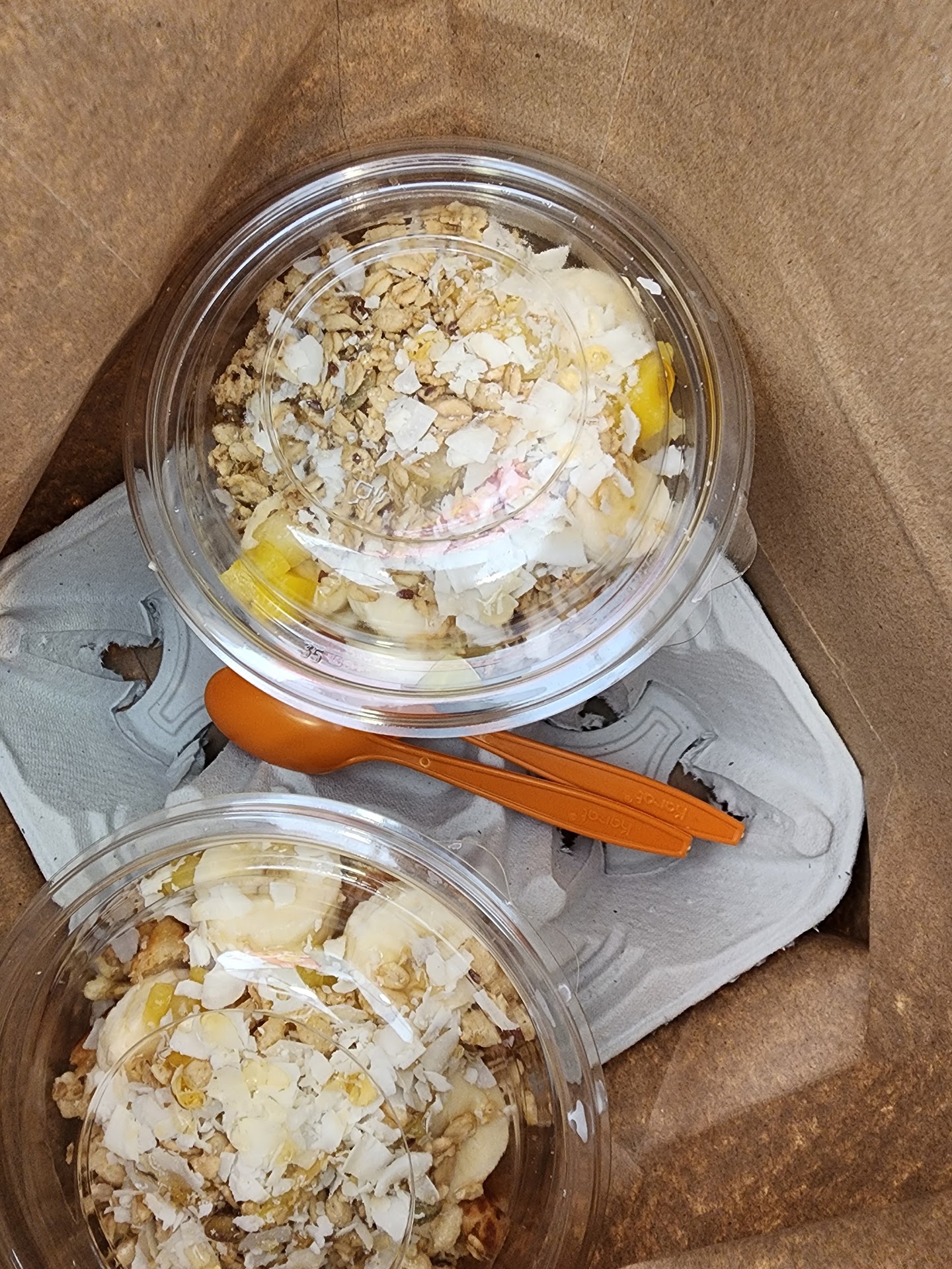 Maybe these are not the "fault" of this location. They were nice enough handing me the order. But the smoothie was terribly thin. Not the right consistency! Instantly, totally melted stepping out into heat (as company ditched cups to prevent this). Look, it was tasty but: