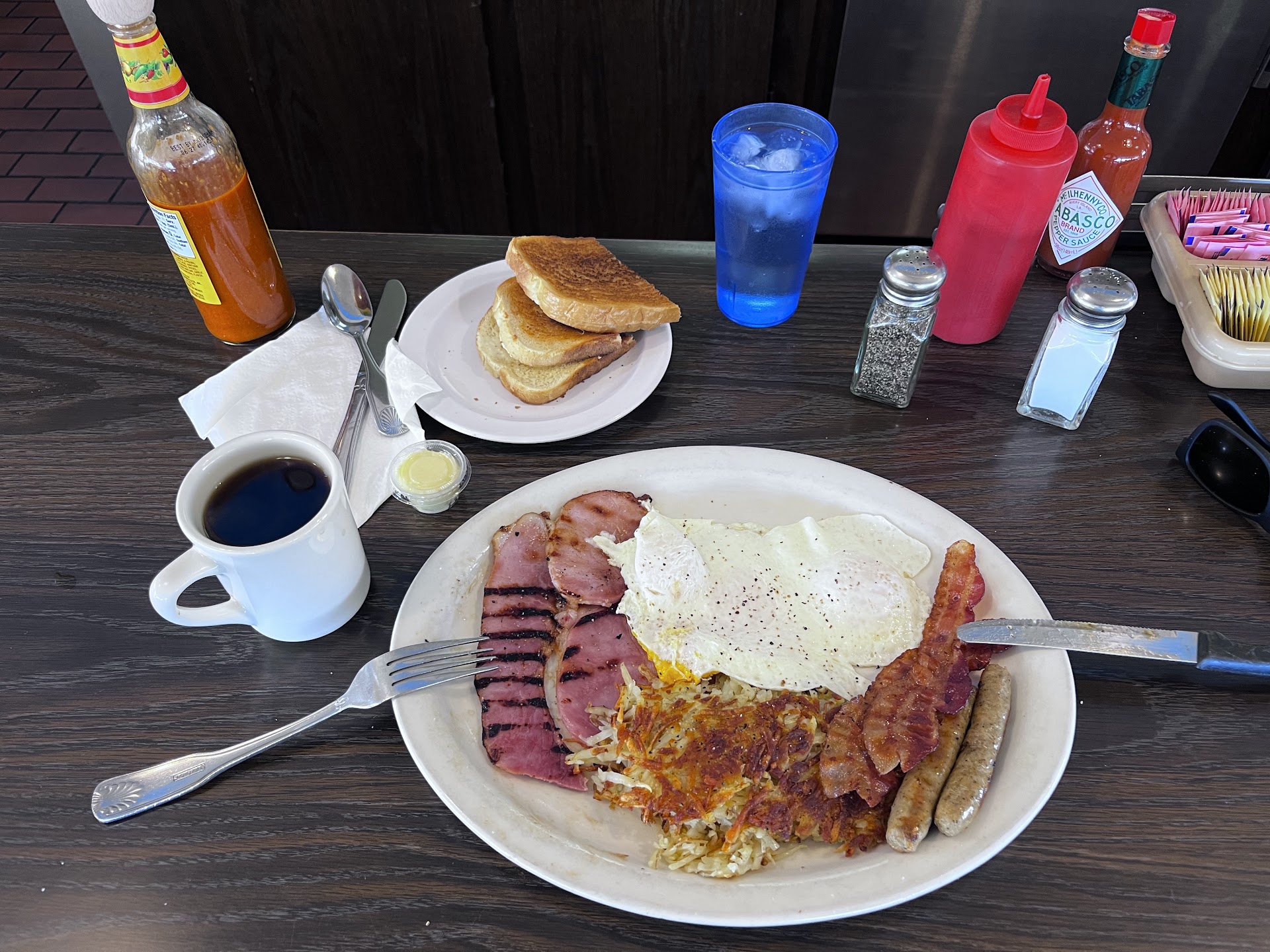 The decor looked straight up 1970s film noir. Rows of oversized yellow vinyl booths. A quarter mile of countertop. A row of sturdy stools that could accommodate any size or shape butt that came through the door.