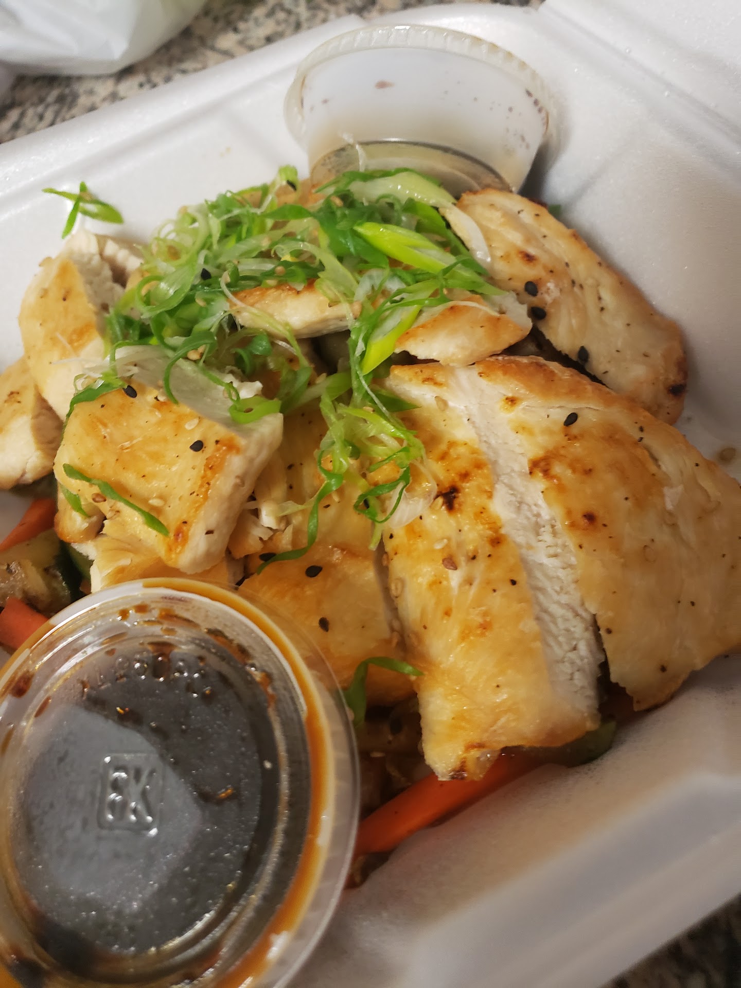 Starting with the entrees, the teriyaki chicken bowl has just plain and awful. The chicken with overcooked and dried out, and was cooked separately from the teriyaki chicken for some reason. The reason you cook the chicken with the teriyaki sauce is to prevent the chicken from drying out; which they absolutely did not do. The teriyaki sauce was good, it's just a shame they didn't combine it. The vegetables they serve with the dish were also way overcooked, steamed vegetables, soaked in soy sauce. Overall, I gave just this dish 2/5.
