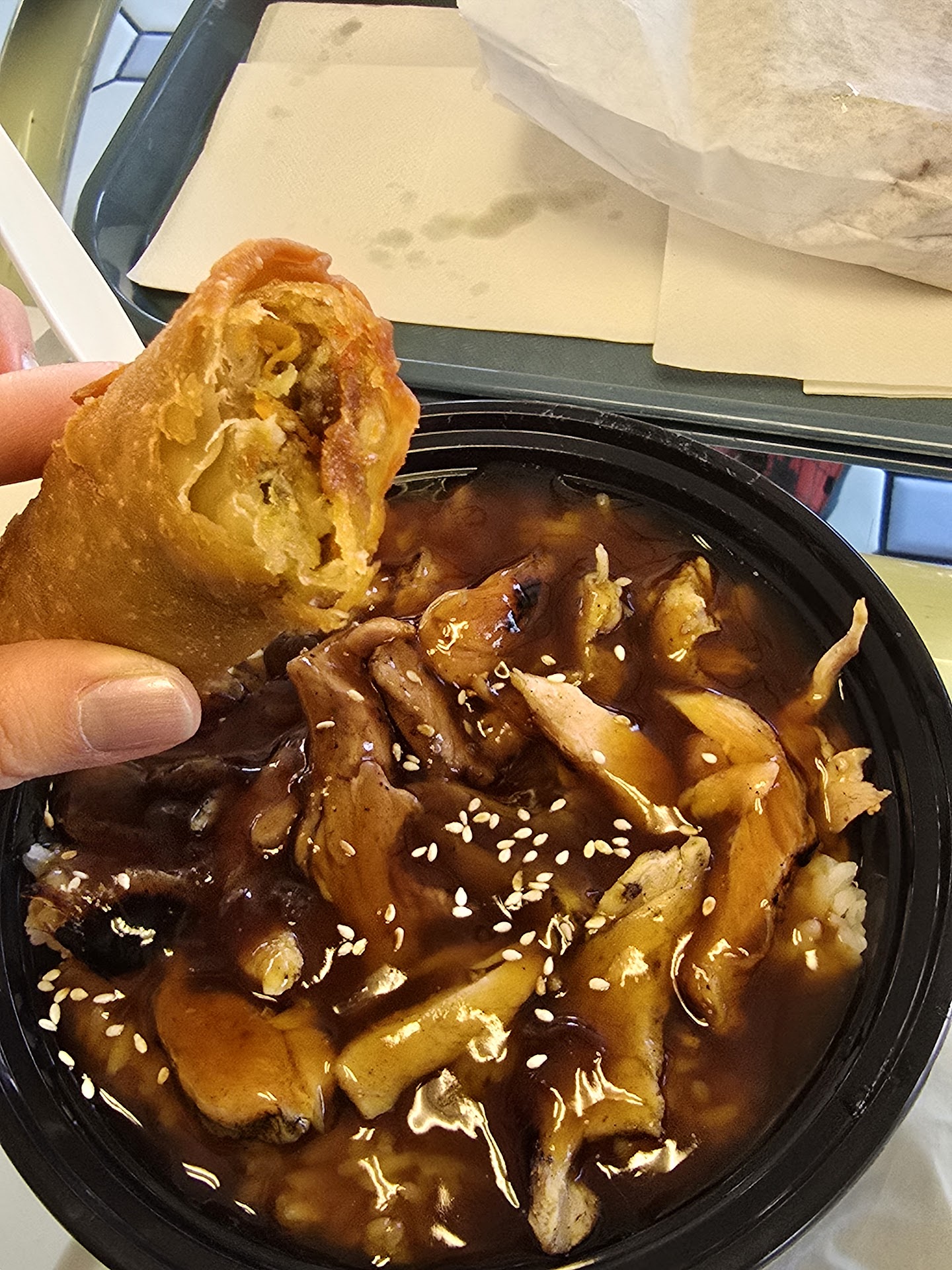 Ps. The egg rolls are homemade and mine has...