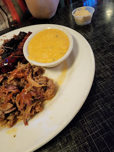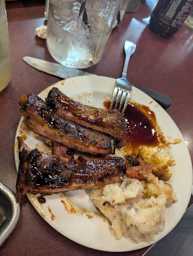 His ribs were mostly bones and had no meat on them. The pulled pork was totally flavorless and the mashed potatoes to be honest tasted like instant ones. Both our food was cold - nothing was hot. The brisket was totally inedible- it was hard and rubbery. I had to pull to bite a piece off. Lukewarm at best was the okra. My fountain soda also tasted very off - I didn’t drink most of it. This is a chain so we didn’t expect much and expectations were very low walking in, but inedible and cold food after a 45 min wait is a not okay for any place. I swear I’ve had better BBQ at Texas Roadhouse or Famous Dave’s …