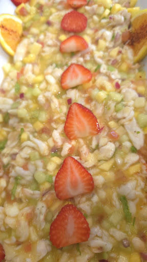 I had the Mango Ceviche—perfectly prepared shrimp tossed in a sweet and spicy mango sauce, topped with strawberries and oranges for a refreshing, mouthwatering balance. Absolutely unforgettable!