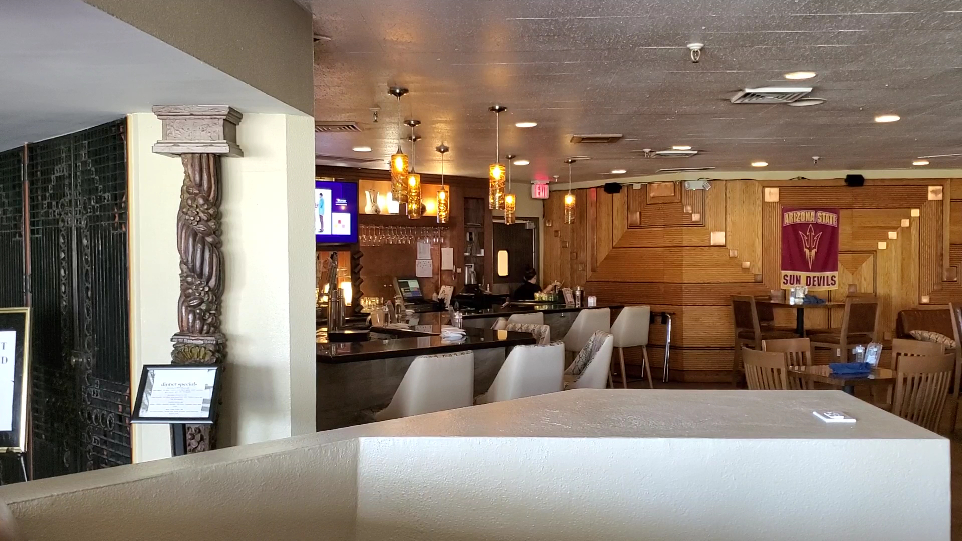 My husband, Fred and I had a flight delay. The airline provided lodging and a food credit. We were pleasantly surprised by the service and quality of our ribeye steak. Justin Weaver, the food and beverage supervisor made our meal most enjoyable. He interacted with us over a cocktail and did so with most every customer. He walked table to table checking on food quality. Checked on the table next to us- said it’s been awhile since you ordered, and came back bringing the food himself! Then a single, middle aged woman came in, he went to seat her and she mentioned she was interested in the game. He got the remote and changed the tv facing her. I would say this man as well as the server, bartender, on duty (Emma) went above and beyond. Exemplary service that didn’t go unnoticed by two “out...