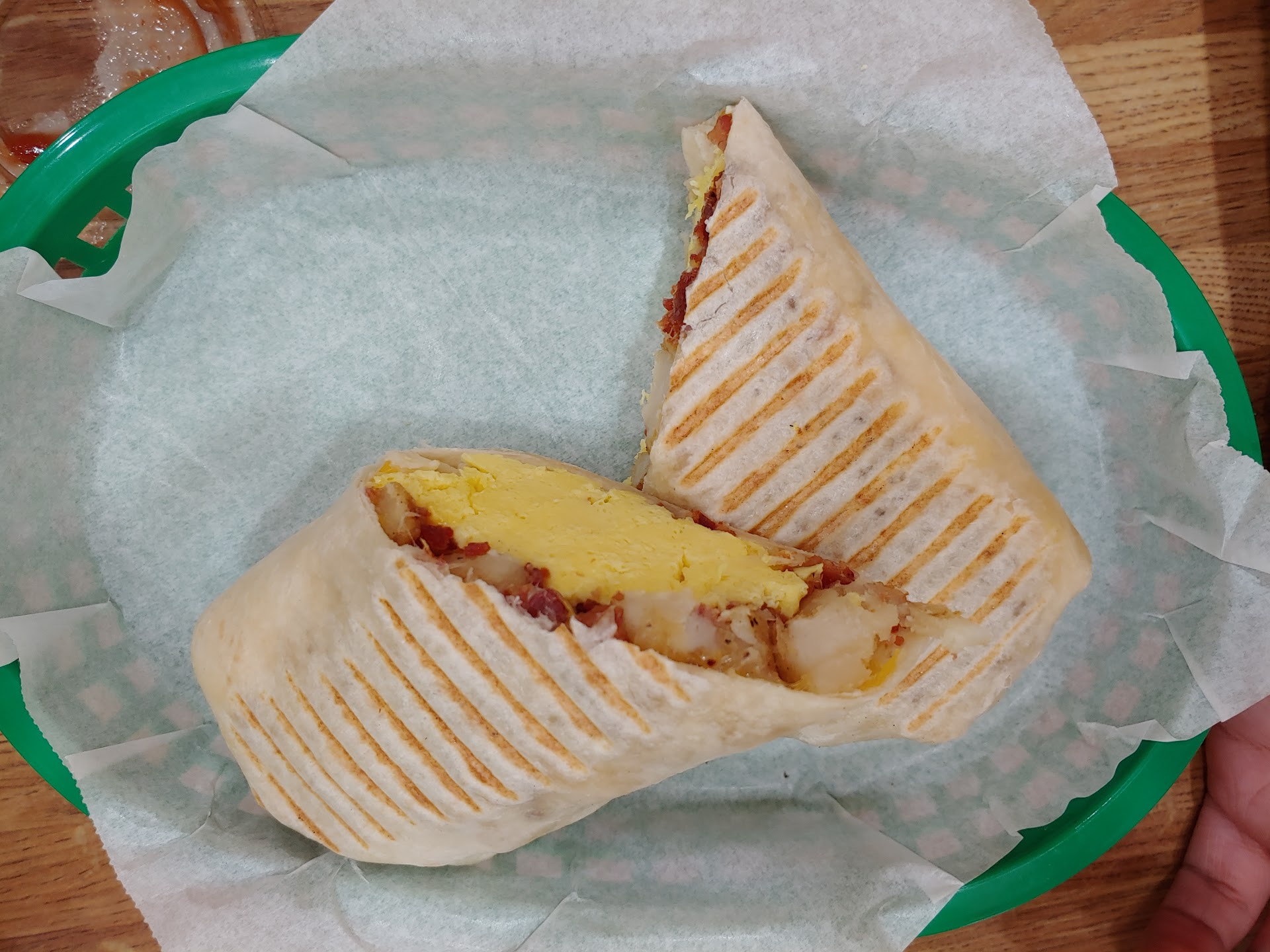 I had the veggie breakfast burrito which was very good. The salsa is mild but flavorful. The veggie burrito having onion, spinach, mushroom, and cheese was everything I basically would add myself to a burrito at home. I love it when a burrito has grill marks and comes out hot. My boyfriend had a bacon breakfast burrito and the chili with cheese. He has ordered delivery a few years ago from this place and it tasted exactly like he remembered. He said his chili was good: not bad, not amazing, but would get it again.