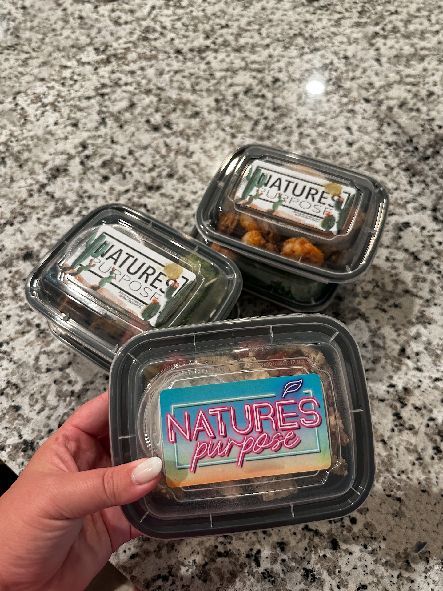 Read moreI have tried many other meal prep services- and NO ONE comes close to the taste and quality of Nature's Purpose. Nothing is frozen, and each meal tastes as if it was just made in your kitchen. You can customize your meals via their website with lots of different options for proteins, veggies, and carbs, and meals come in 3 sizes- love that it’s not a one-size-fits-all approach! Also options for breakfasts! Ingredients are fresh, flavorful, and healthy, and it’s easy to count your macros using the nutrition info provided on the website. If you chose the delivery option, meals are delivered to your doorstep on Sunday nights, which makes it so easy to start the week on the right foot. My delivery was great again this week. My order was prepared 100% correctly, and food was cold with insulated packaging and ice packs. No more gross, frozen, tasteless meal prep/delivery companies for me. I really can't say enough good things about this company. The service and quality of Nature's Purpose is...
