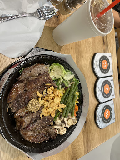 Read moreWas so excited to eat pepper lunch again after only seeing it in Japan previously. We came for dinner two nights in a row and while the first was a blast, the second was super disappointing. I ordered the same meal and added an egg the second time and somehow only received half the portion of steak, which was still raw and gummy in the center by the time it stopped sizzling. One of the servers tried to help by pouring cold oil over which did nothing except seep into the rice, and even though they brought it back to be recooked, it became very...