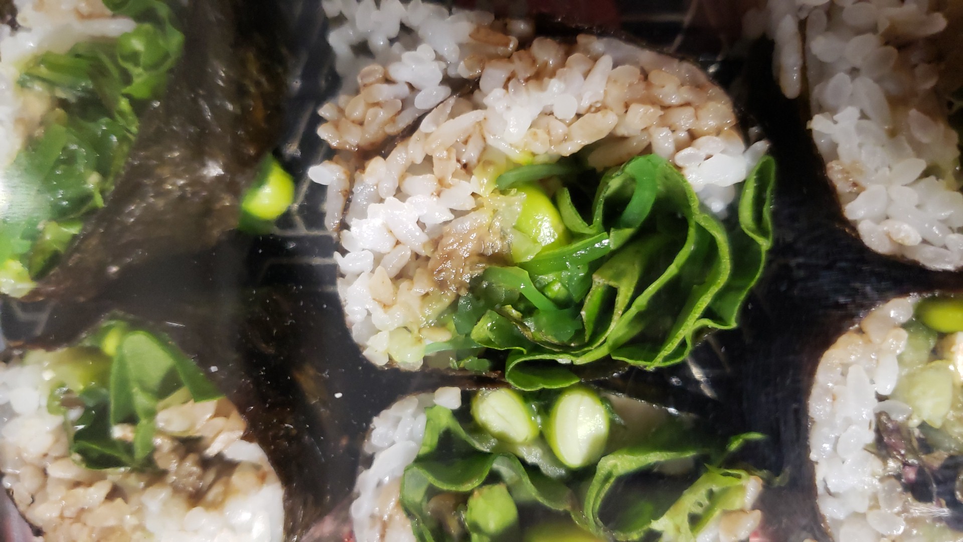 The sandwich board pictures outside are very misleading. They only had 1 veggie sushi roll, and it was the worst roll I have ever had. Pic showed 3 or 4 fresh veggies like carrot, celery, cucumber type. What I got instead was edamame and seaweed salad, which made for a flimsy roll that competely fell apart. There was no ginger or wasabi either. Sushi is one of my favorite foods and this place does not know what they are doing. I was excited about the custom ramen bowls until they said you could only get them with pork broth. Don't bother with this place if you are vegetarian or vegan, there's only 3 veg options: 1 roll of whatever they decide to throw in it (not even fresh veggie) or custom poké bowl, which just did not have good flavors to me at all, and veggie potsticker, (these were actually good). Better off going around to the other side of building to Desert Roots...