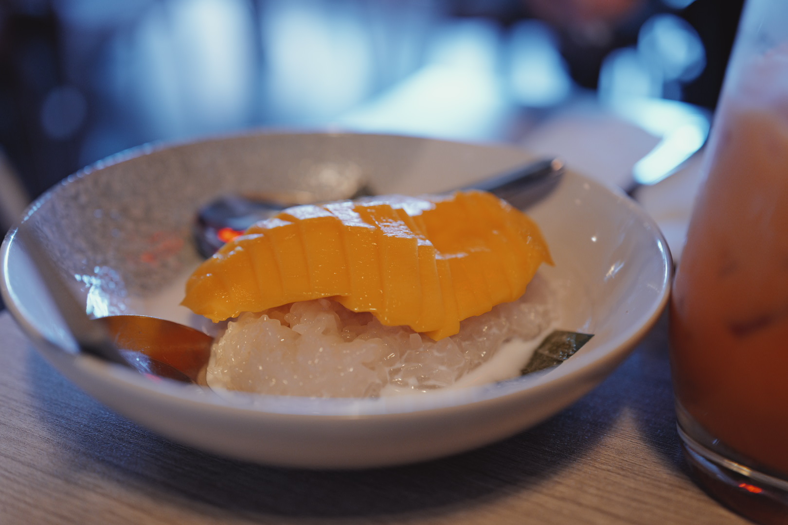 And then comes the mango sticky rice, the crown jewel. The mango is sliced with precision — golden, ripe, and almost melting as it hits your tongue. It’s floral, fragrant, and naturally sweet. The sticky rice is warm and luscious, with a whisper of coconut cream drizzled generously on top. Each bite is a symphony of textures: soft and chewy rice, juicy mango, and the luxurious silkiness of warm coconut milk. There’s even a subtle crunch from toasted sesame seeds that adds the perfect contrast. Close your eyes, and you’ll hear the spoon gently scoop through the rice and mango — it’s that kind of satisfying.