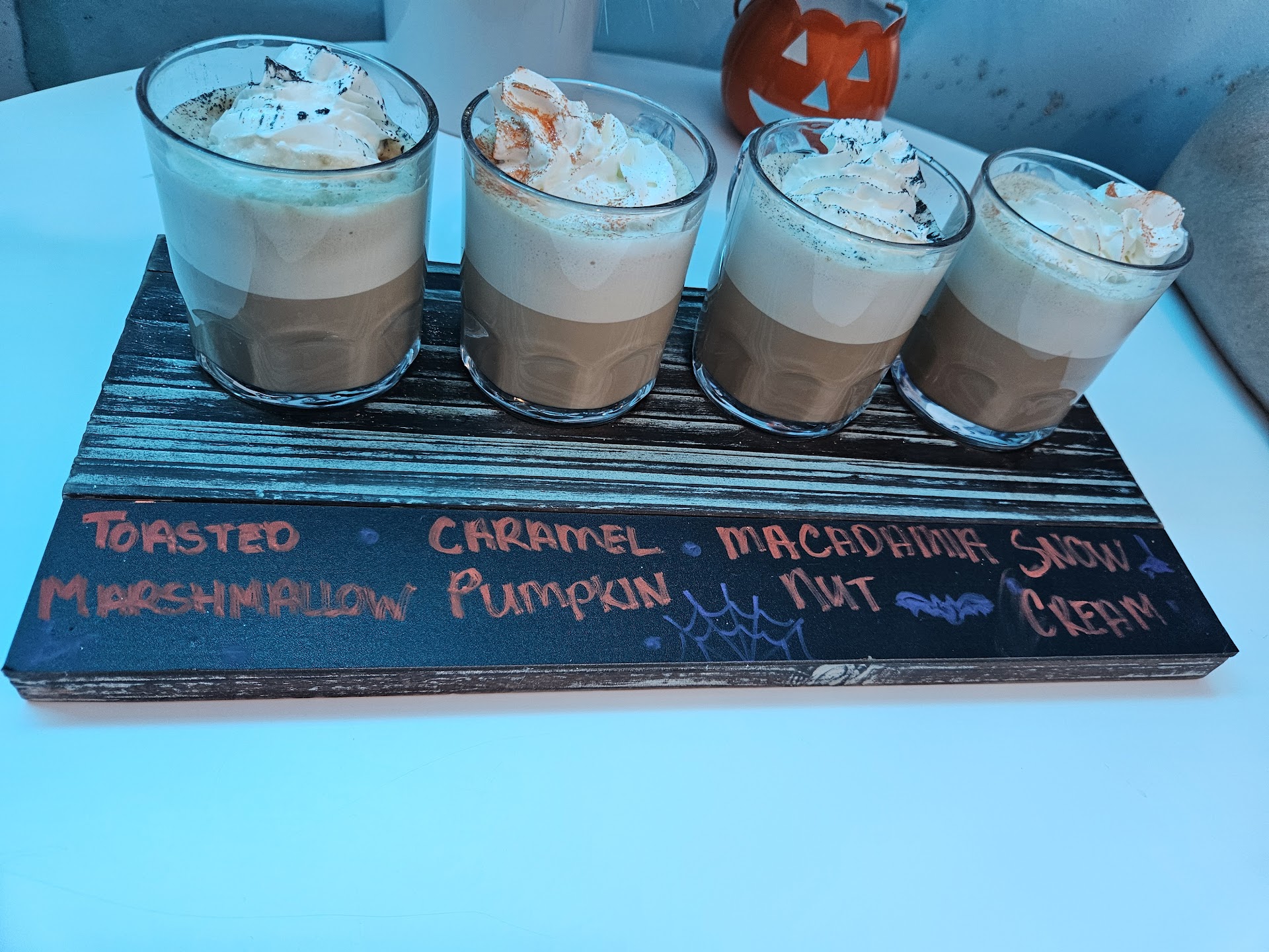 As for the coffee, I tried their iced black coffee, and while it was fine, it wasn’t anything special. I also had their limited-time spooky flight – the macadamia nut and toasted marshmallow were great, snow cream was decent, but I didn’t care for the caramel pumpkin.