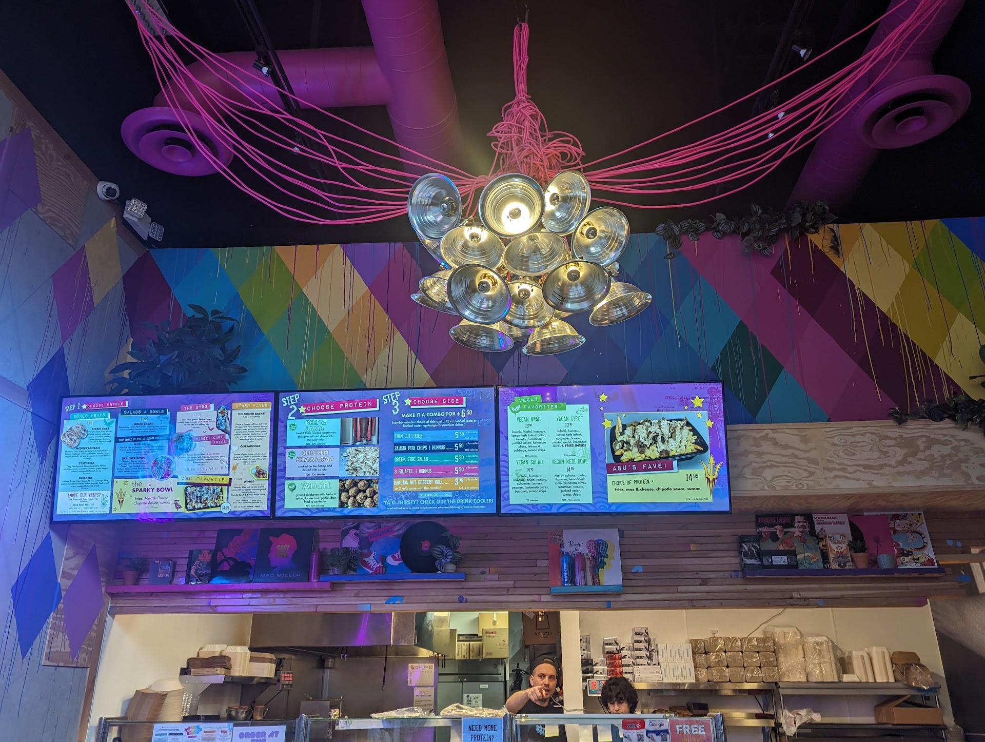 Such a mixed bag here. If you’re a student and you aren’t tight on M&G, I’d pretty confidently say it’s the best place to spend any student meal plan money.m (especially given how marked up a lot of things are at the student convenience stores). But even with spending just these already awarded meal plan dollars the prices are a bit steep for a place that’s borderline grab and go, not table service, etc. The food here is generally pretty consistent. The gyro is my go-to and doing this with the beef and lamb generally turns out quite nice. The fries are generally delicious and putting them in the gyro is an unusual, but not poor idea and tastes alright. The taste is good, and it is consistent, but it still feel like it’s missing a little something, and maybe because of the fries masking the taste but I don’t know about the halal mark. I’ve had once where the food left me with an upset stomach and gassy, which given it both doesn’t happen consistently and I can eat a gyro normally fine I don’t know how to feel. Some of my ventures outside of this normal have been a bit less successful, for example with the Mediterranean bowl which with the mix of the warm meat combined with a lot of items that don’t mix together excellently isn’t as great as the gyro. I’ve gotten some weird interactions with staff when coming in a bit on the later end usually around 15-30 minutes before close (I sleep late so sometimes stopping by for just a side order is nice for a late night snack). It’s nothing bad, but it feels like a “we closed 10 minutes ago” type of vibe at a sit down restaurant or bar… I understand from the side of a worker but I’d get it more if it was like 5 minutes before closing or something. It’s almost as if it’s soft hours where the place effectively closes 20-30 minutes before it actually does at 1. If that’s what we’re going for then I’d just say have your hours close at 12:30 or 12:45 instead. I can’t also wholeheartedly agree to give a 5 star review to an establishment that has a policy to give free drinks and a side(?) to all who give a five star review AND per platform you give a review on. With college kids in the mix it feels a bit sketchy and a 4.9 average review that stands here...
