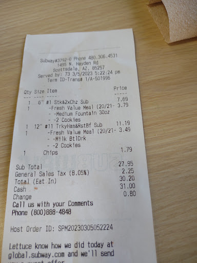 Read moreIt pretty disappointing when your food is made incorrectly despite standing in front of the employee and telling them what to put on your sandwich. I asked for teriyaki chicken, I got grilled chicken. I asked for bell peppers, they put jalapeños. They even forgot to put cinnamon on my churro, very disappointing. The service was worse than the food. The employees did not wear subway uniforms or hats, and used very soiled gloves to make everyones food. The man who ordered his food just ahead of me was told he couldn't get the "6.99 6 inch and meal deal" even tho he got all of the correct items. He had a loud exchange with the employee, in which the employee yelled back at him. At one point, the man started to yell at everyone else in line and the employees did nothing to deescalate the situation, only provoke him. As a fast food employee myself, I get having to deal with angry customers it happens to me all the time. But the way the two teenage employees handled this situation was extremely unprofessional and...
