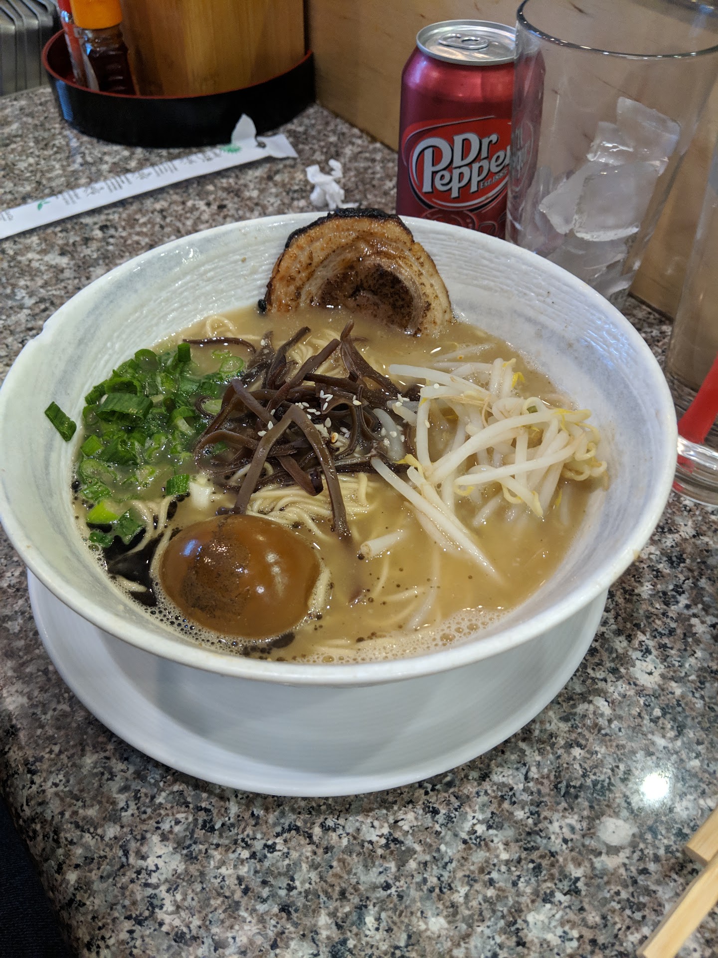 I was very excited to try this place out when I saw all the great reviews, as Ramen is one of my favorite soup dishes and finding a place that does it right can be tricky in Arizona. I’ve given this place a chance twice with a couple of friends who are also Ramen-lovers, and both times we’ve left a bit disappointed. The unanimous opinion on both of our visits in regards to the taste of the overall bowl can be narrowed down to one word: Bland. This makes me question all the great reviews here. I wonder if most of the high ratings come from people who have had little exposure to other Ramen or maybe people who are just looking for a trendy place to eat. Either way, let me get to it…