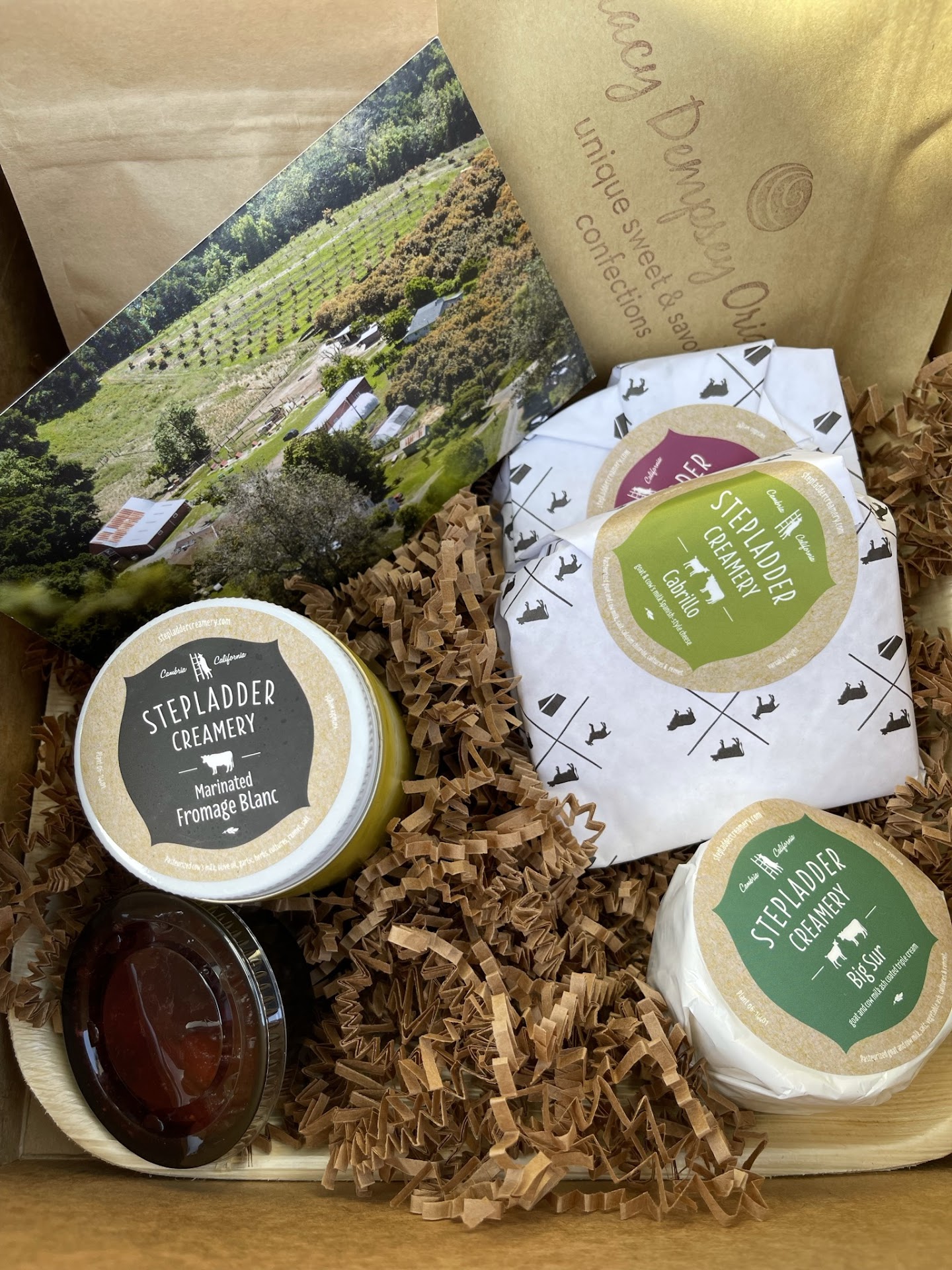 Even more, I love what I bought. The first month of the Cheese Board set an incredible standard by featuring a cheesemaker out of Cambria, California, named Stepladder Creamery. The box included four very different cheeses. Along with that was a baggy with almonds and dried apricots, and two house-made items: strawberry jam and Black Pepper & Green Za'atar Crackers. The jam and crackers were excellent paired with the perfectly-ripe Big Sur cheese I cut into that night.