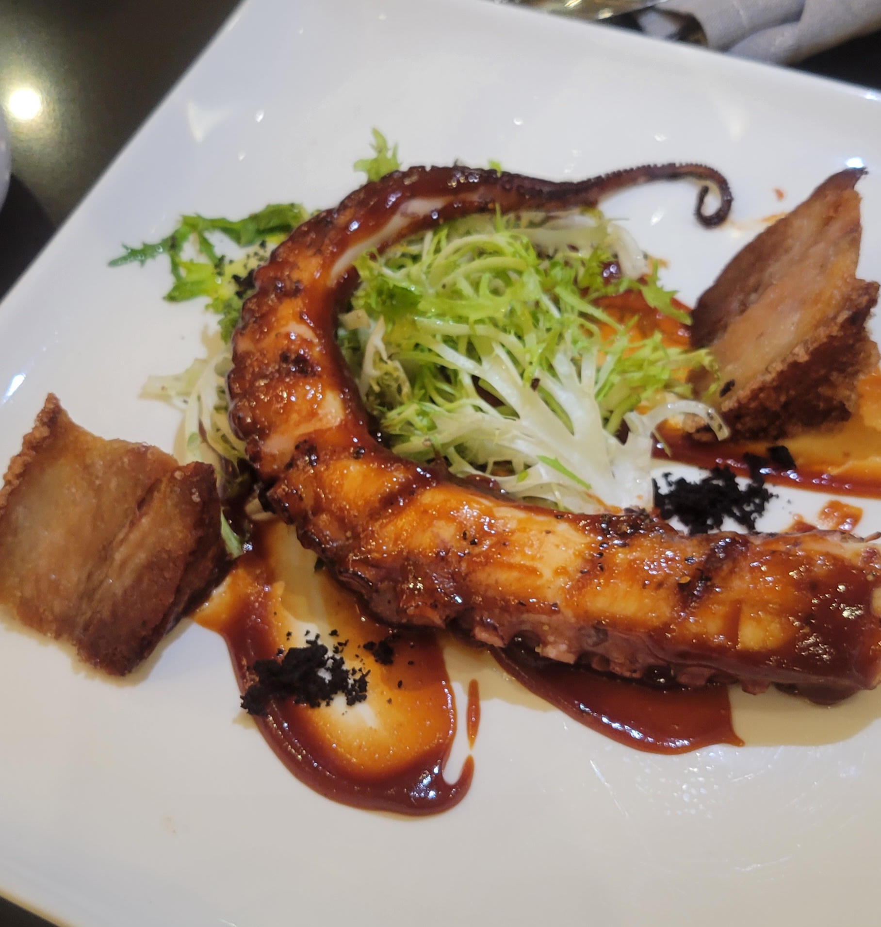 I received a bill for the total with no breakdown. We all get ready to pay and she tells me she charged my card in total for everyone’s transactions which I could not for the life of me understand. We left to be seated. Which I was ready to go somewhere else. Luckily for my waiter the new guy Lucas. He was amazing, I’m assuming because he was new and hasn’t been tainted by the veteran staff. He had an amazing personality, and really took good care of us!!