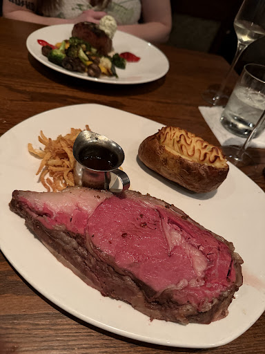 The main entire that I ordered was the prime rib with a twice baked potato. The twice baked potato was tasty & paired well with the prime rib. I thought my prime rib was excellent. I ordered it medium rare & it was spot on. My wife ordered a sirloin with blue cheese & roasted vegetables. She enjoyed her meal as well. The only thing I would say is that the actual plating of the meal was a bit messy. It was all over the place & for the price of the meal, it looks sloppy. I personally do not mind as long as the flavor is there, but I know many would be upset over that.