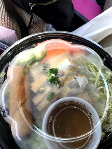 Food arrived quickly and I’m not surprised considering its quality. Vegetarian egg roll was probably store bought, tasted okay. Nothing terrible, nothing great. Vegetarian spring roll was blah and the peanut sauce was so bland. Never had peanut sauce that bland before. Rice vermicelli with tofu was disappointing. The tofu wasn’t cooked well enough, was soggy, not cooked with any seasoning, and the “fish” sauce didn’t taste like fish at all but rather tasted like water. The most watery and dull sauce I’ve ever tasted. Portion was huge so I threw half of it away. Not worth keeping.