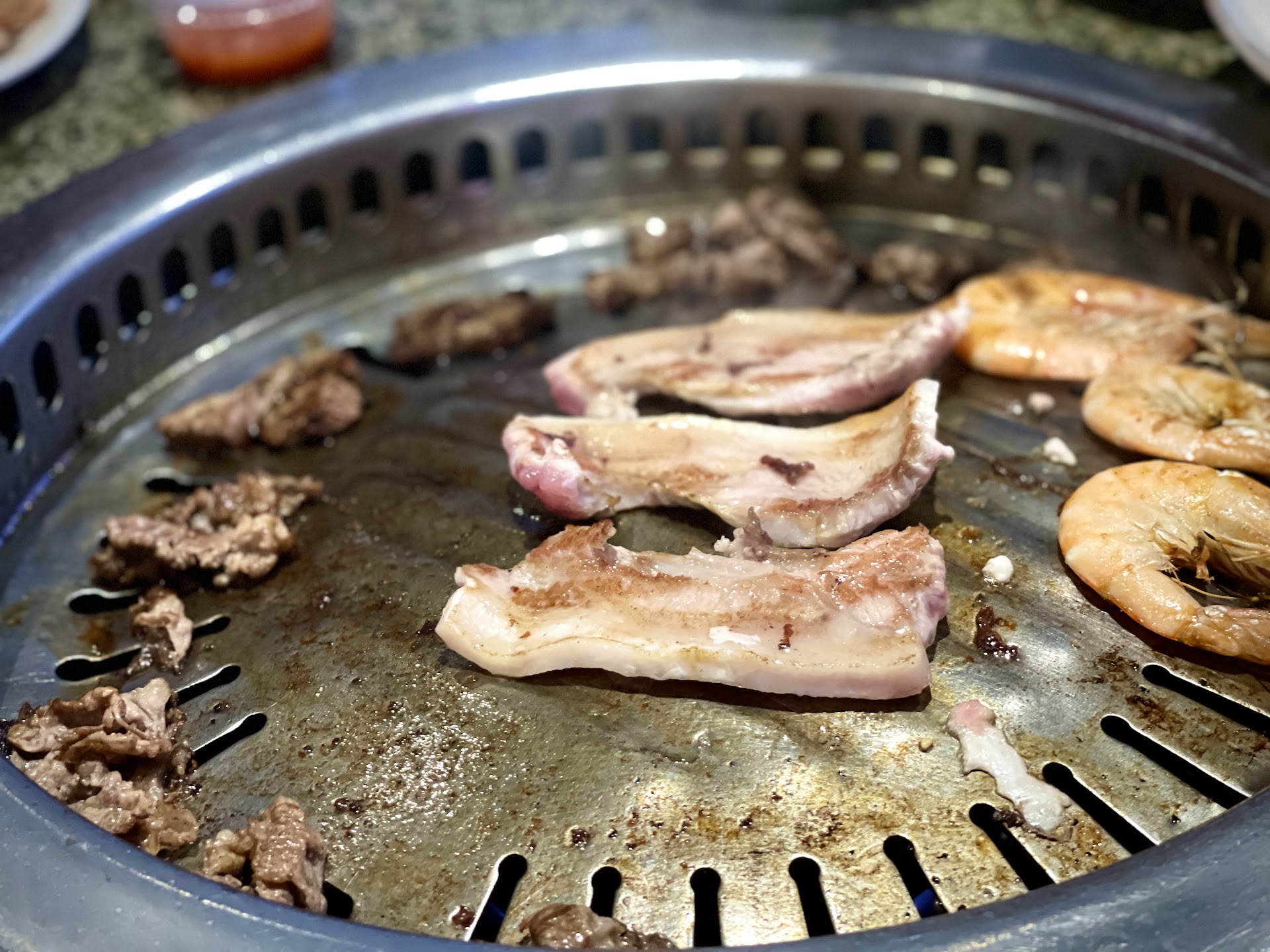 I HIGHLY suggest getting #6, the marinated short rib. It is SO So SOOO good. Duck breast was alright - really dry thin pieces. Brisket was alright. Shrimp was dry.. basically just shrimp with salt on top. Pork belly was bomb! Side dishes were really on point. I loved their soy bean soup, and their galbi jim at the salad bar. Skip on the seafood pancake; it is cold and too bulky. Even putting it on the grill didn't make it better. I also suggest wrapping the daikon from the salad bar with the meat for a low-carb alternative ;)
