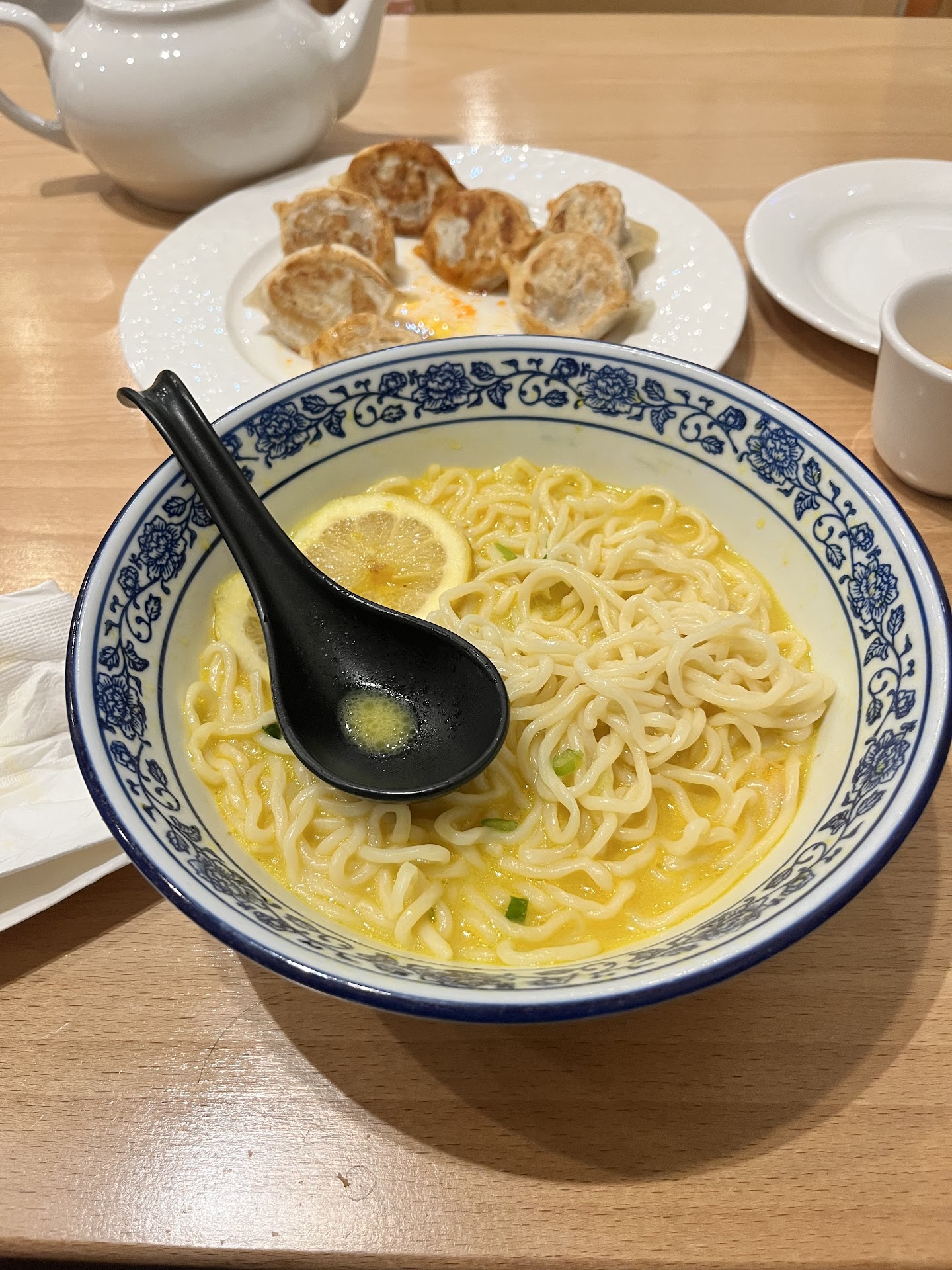 The kimchi dumplings were really good too. Lol. Oh and they give you hot tea when you sit down. Classic.