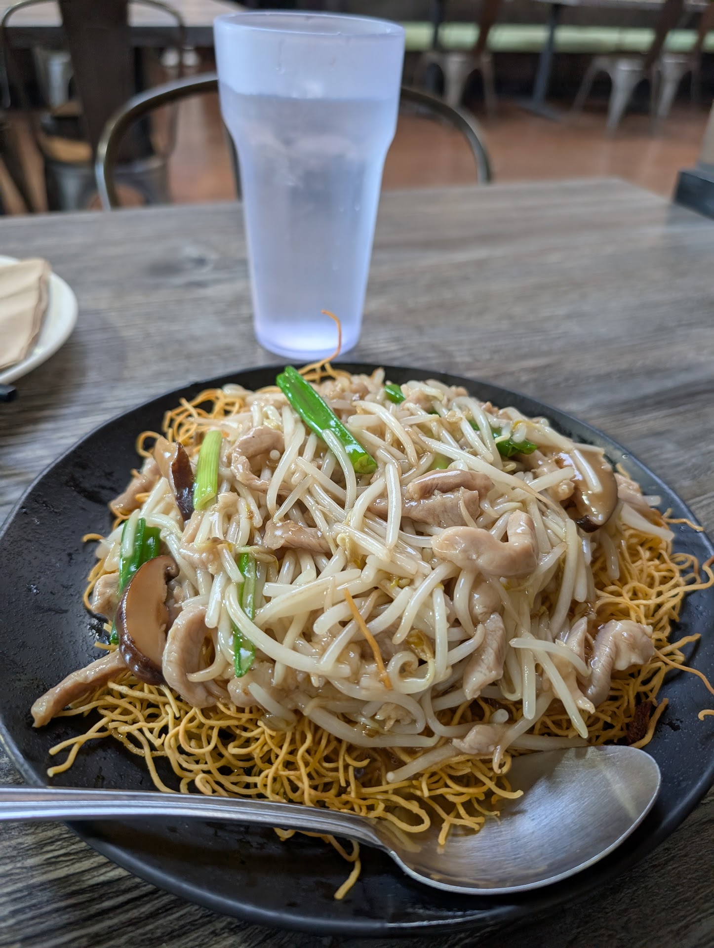 Read moreGood franchise location. Very quiet most of the time. Food is freaking hot every time not sure how they can keep doing this on a consistent basis. Prices are average. Key thing would be it's the same price lunch or dinner so no point rush here for lunch. Come for dinner if you must. Other places have lunch specials. Don't look here for that. The setting is fast food but you get table service. I was confused the first time ordering at the cashier for dining in. Seat down at any table to start for dine in. Parking is around the back from an alley way. There is a narrow patio if you must sit outside between the buildings perpendicular to the street. Ordering pan fried stuff like noodle and rice you could hear your food being cooked in the kitchen as the layout passes the roaring fire and the banging of the wok to the dining hall. Then for the average day, food is delivered immediately to your table. There is no wait in between. So for the sake of your tongue, eat carefully because it always and only burns after you put the food in your mouth. The shredded pork pan fried noodle looked innocent but nuked my tongue. The noodle was cool enough to handle but as soon as the sauce with the meat touches your mouth, sirens go off in your brain and realize it's freaking...