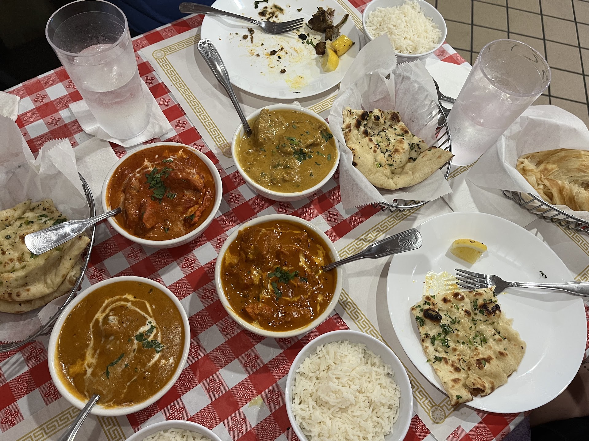 There were many saucy options that would go better with small bowls than a plate and technically there were the small sauce bowls. But this was all first time/beginner learnings. I digress. Make the decision before you plate up if your carbs are gonna be bread/naan or rice. This will help map out your plate and the saucy items and how to keep them contained.